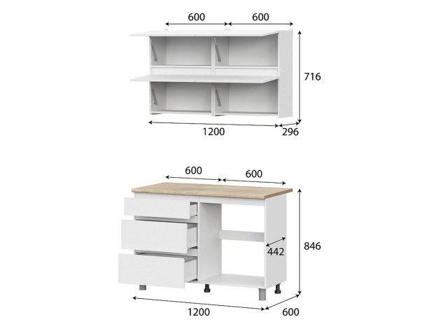 - Стол под мойку: 82 х 120 х 42,6 см.