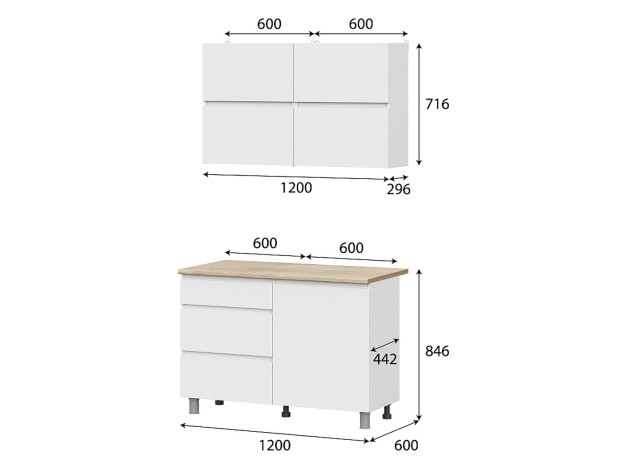 - Стол под мойку с ящиками: 82 х 120 х 44,2 см.