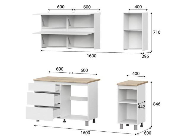 - Стол под мойку: 82 х 120 х 42,6 см.