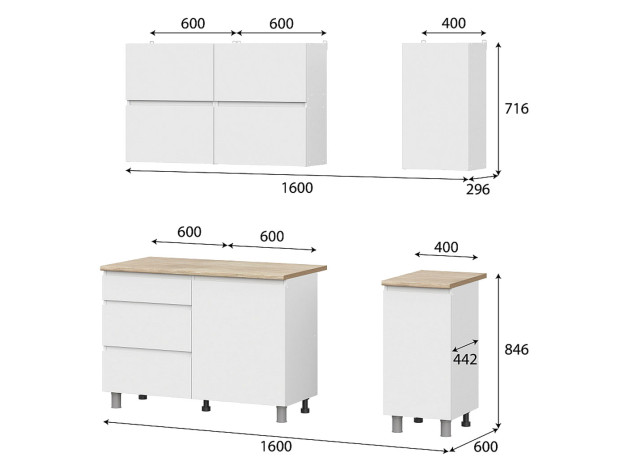 В комплектацию Ширина 160 см входят (ВхШхГ):