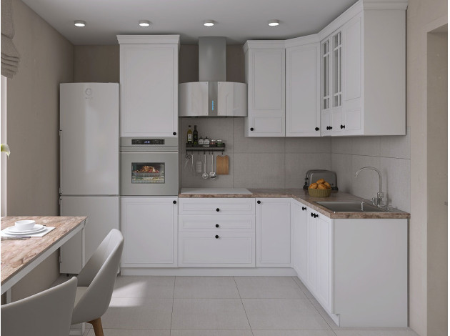 Кухонный гарнитур Бьянка 240х160 см Белый С пеналом Правая