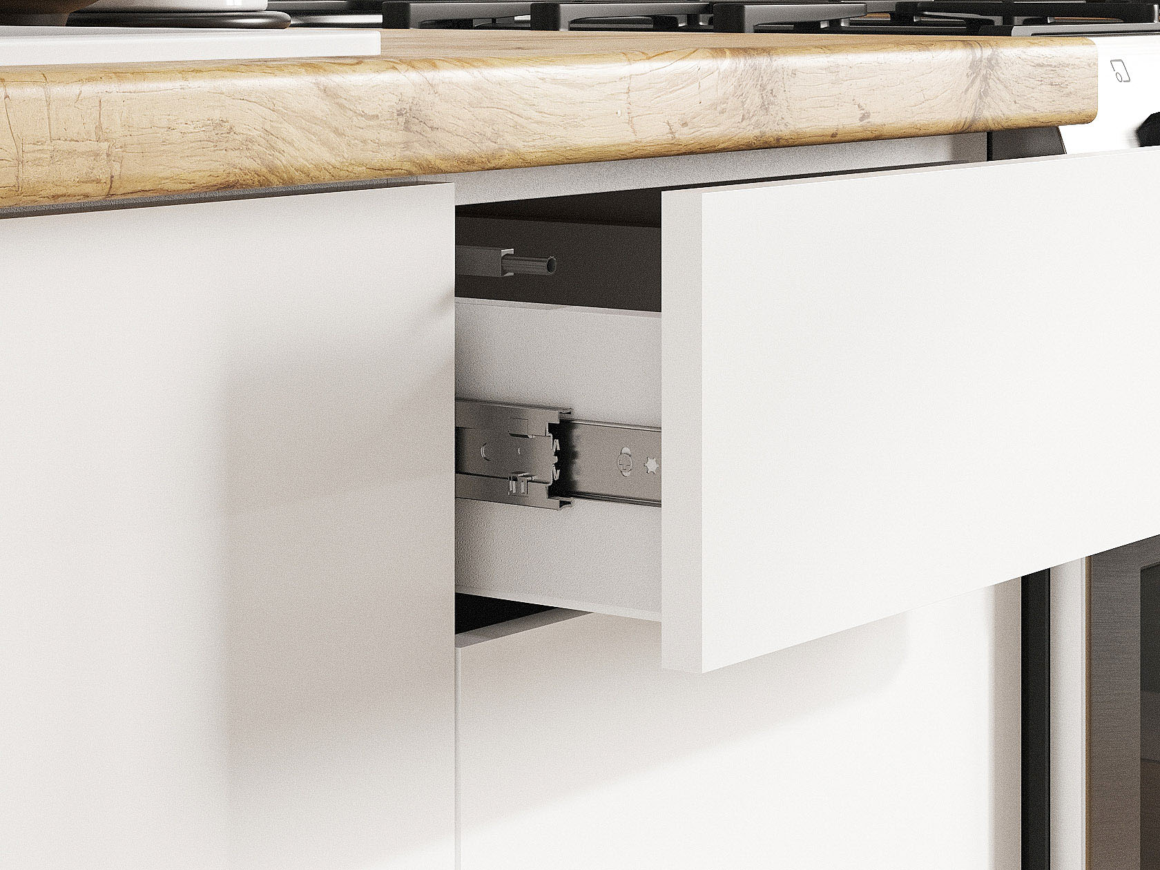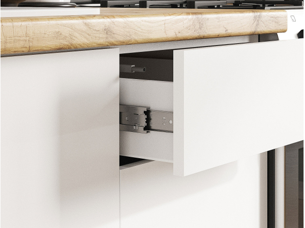- Направляющие ящиков: шариковые.