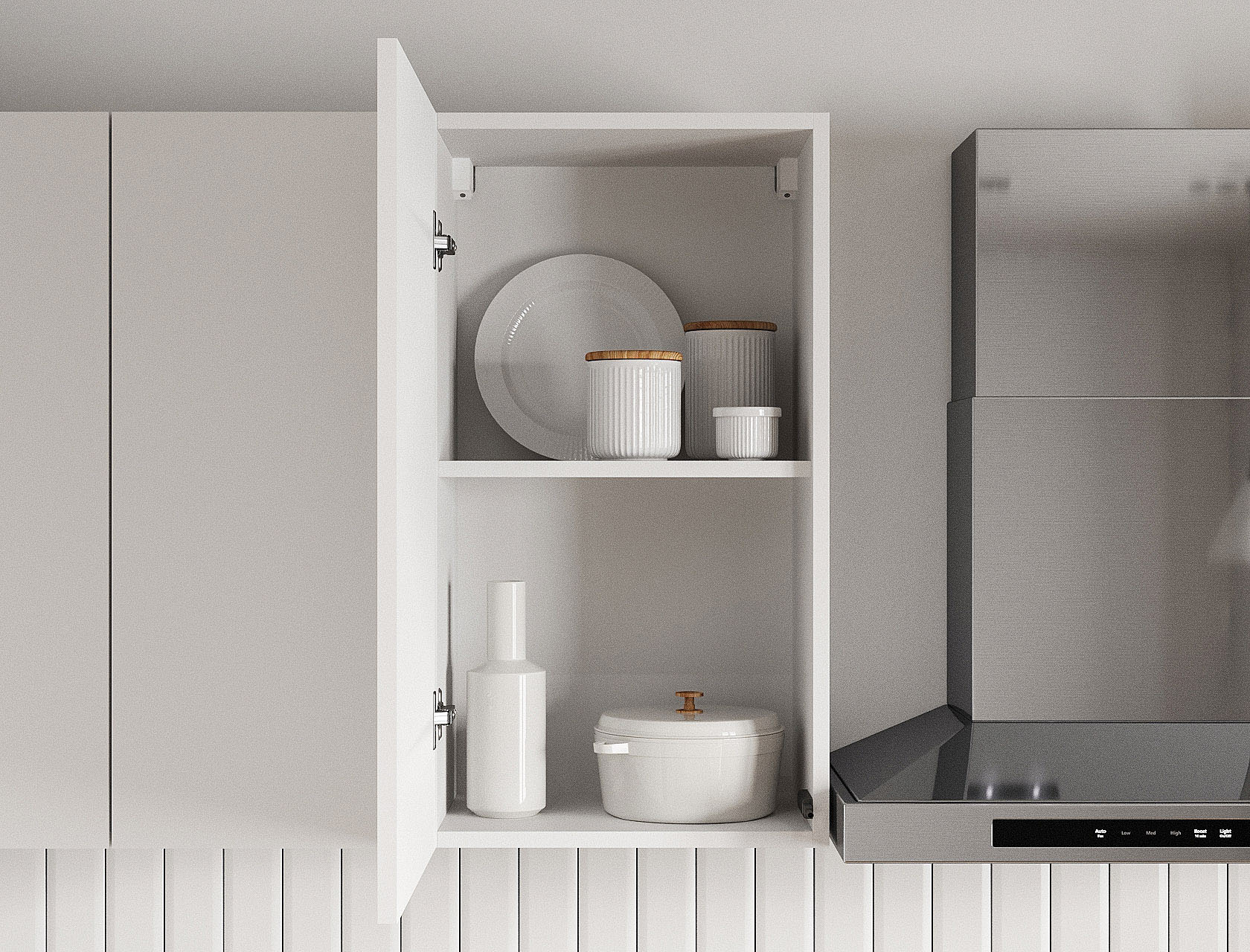 - Фурнитура дверок: накладные петли с доводчиком.