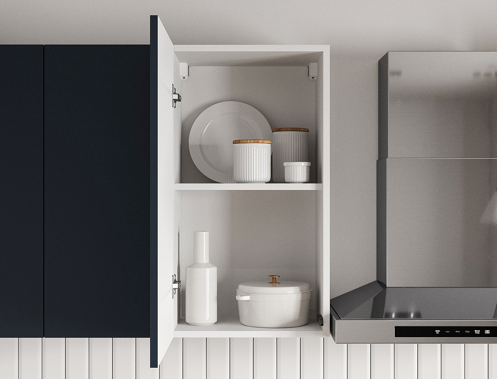 - Фурнитура дверок: накладные петли с доводчиком.