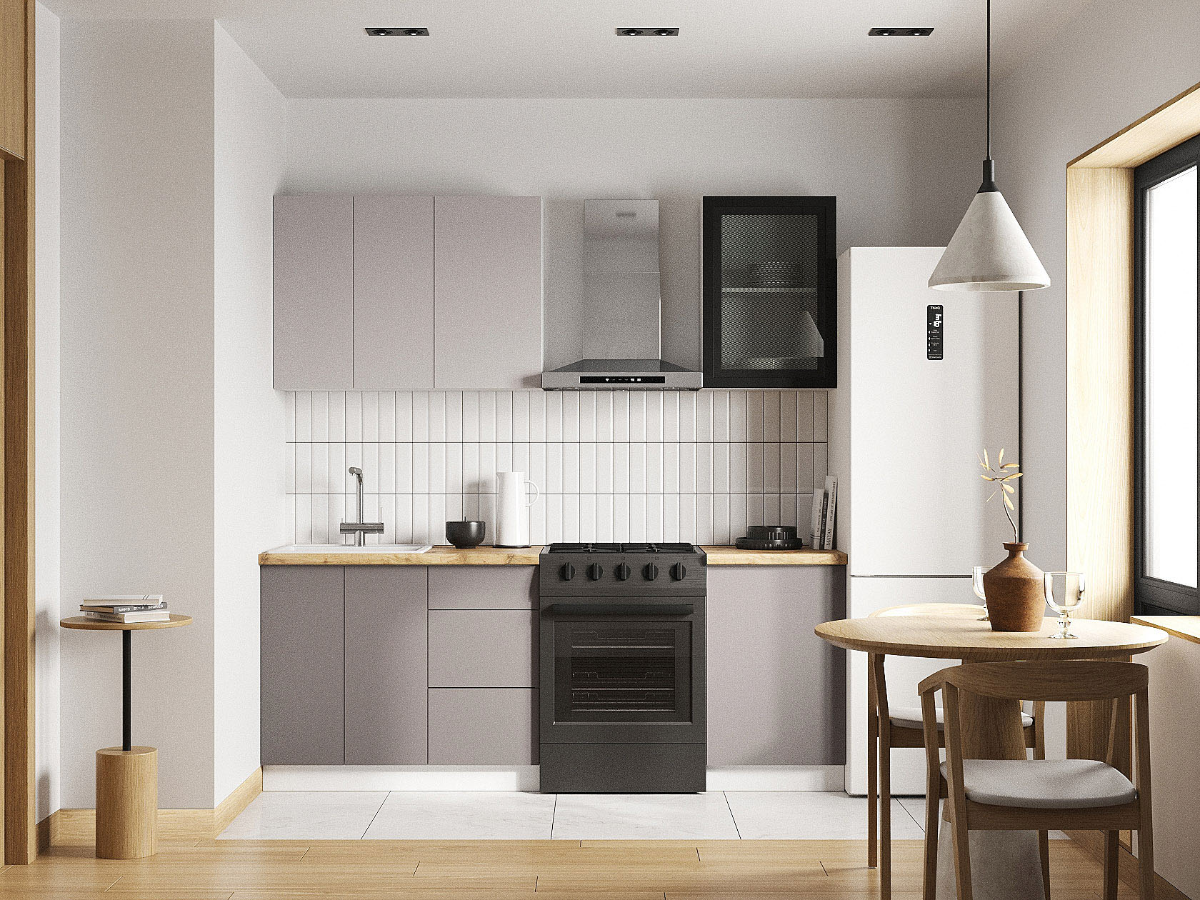 Кухонный гарнитур Модерн 150 см Белый / Черный матовый / Нео / Грей