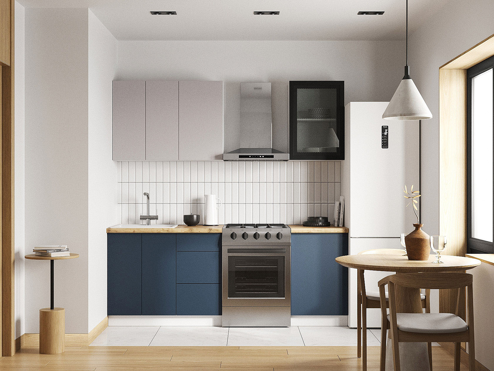 Кухонный гарнитур Модерн 150 см Белый / Черный матовый / Нео / Океания