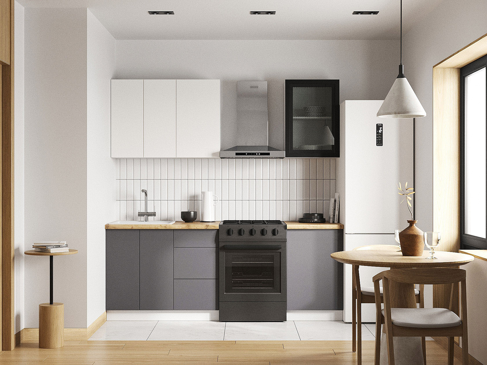 Кухонный гарнитур Модерн 150 см Белый / Черный матовый / Бланж / Графит