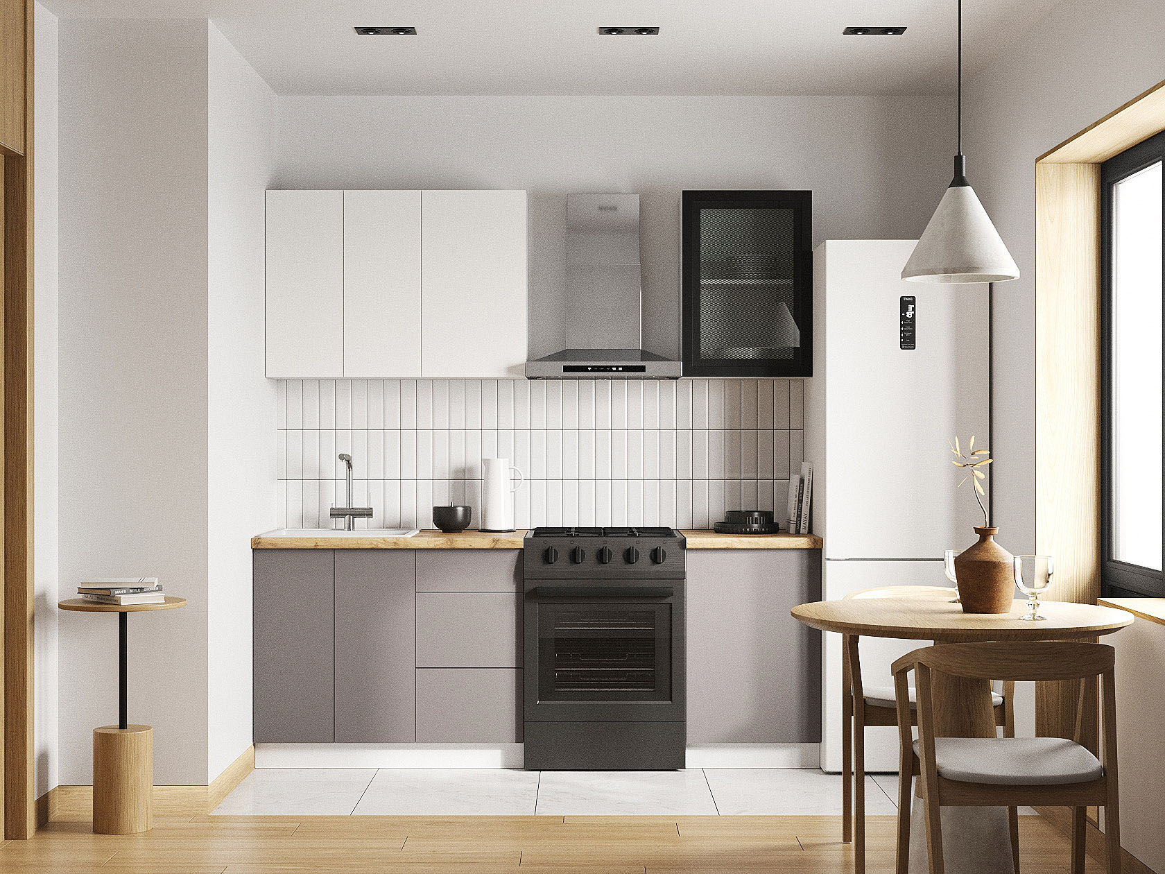 Кухонный гарнитур Модерн 150 см — готовое решение для небольшой квартиры или студии. Компактный набор элементов организует порядок и создаст аккуратный интерьер. Верхний ряд украшает шкаф-витрина, а выдвижные ящики позволяют быстро находить столовые приборы и другие принадлежности. Фасады без лицевой фурнитуры подчеркивают лаконичный дизайн мебели.
