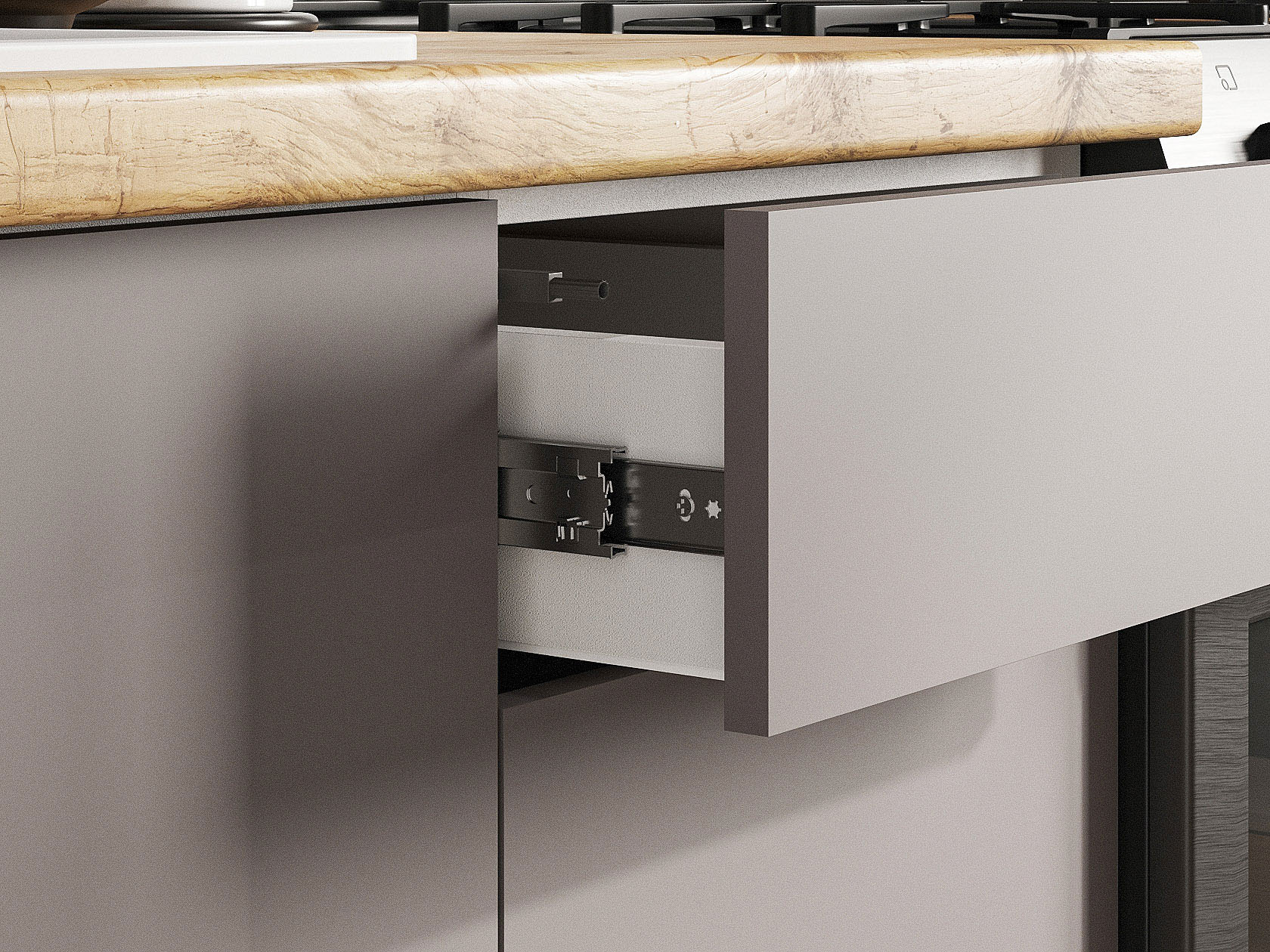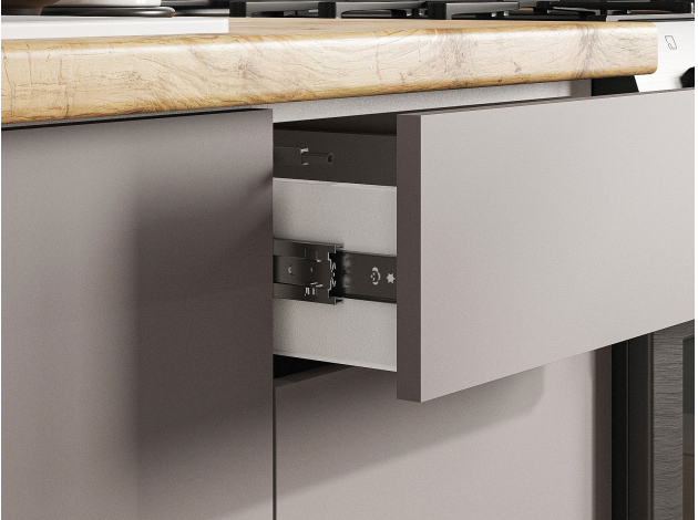 - Направляющие ящиков: шариковые.