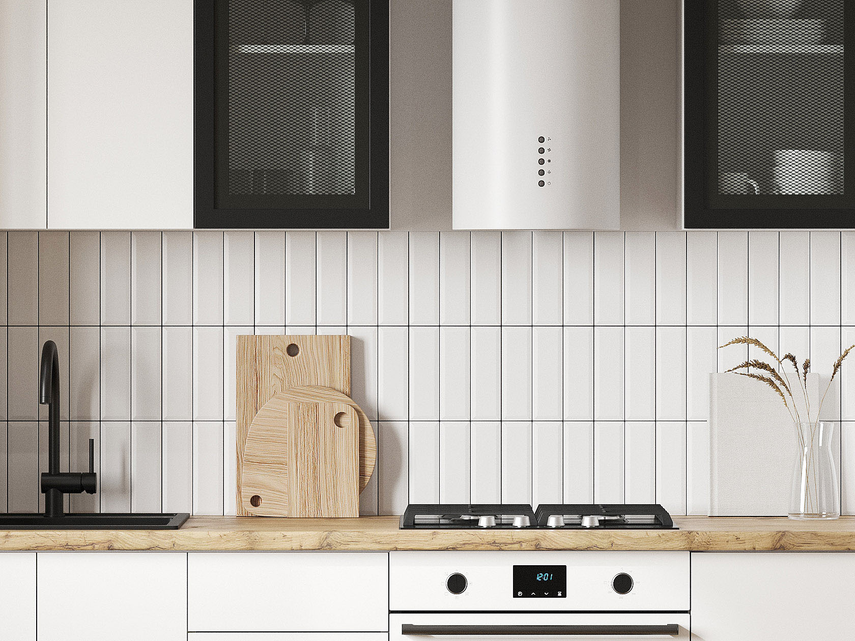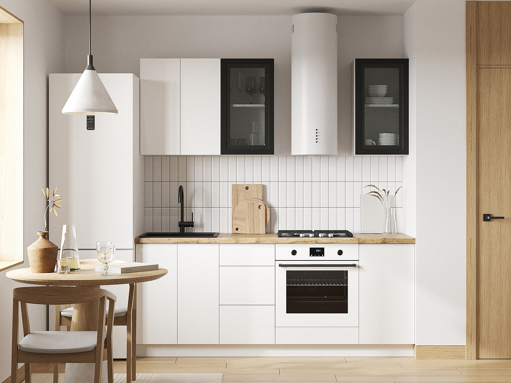 Кухонный гарнитур Модерн 200 см Белый / Черный матовый / Бланж