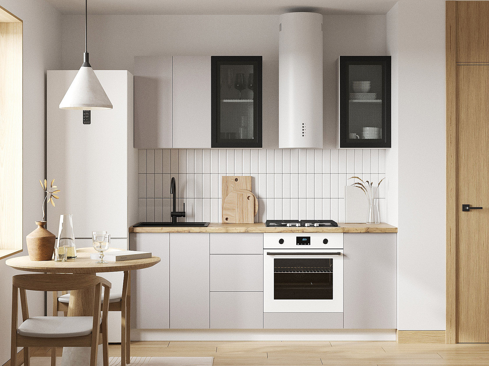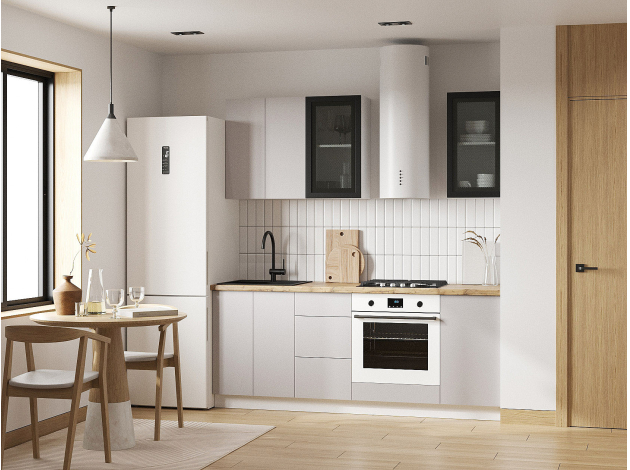 Кухонный гарнитур Модерн 200 см Белый / Черный матовый / Нео