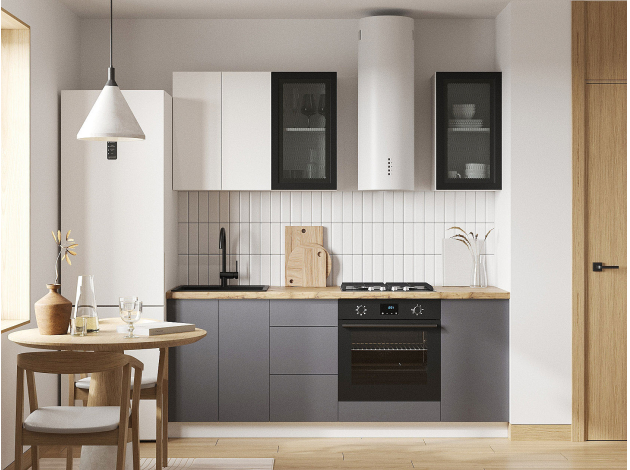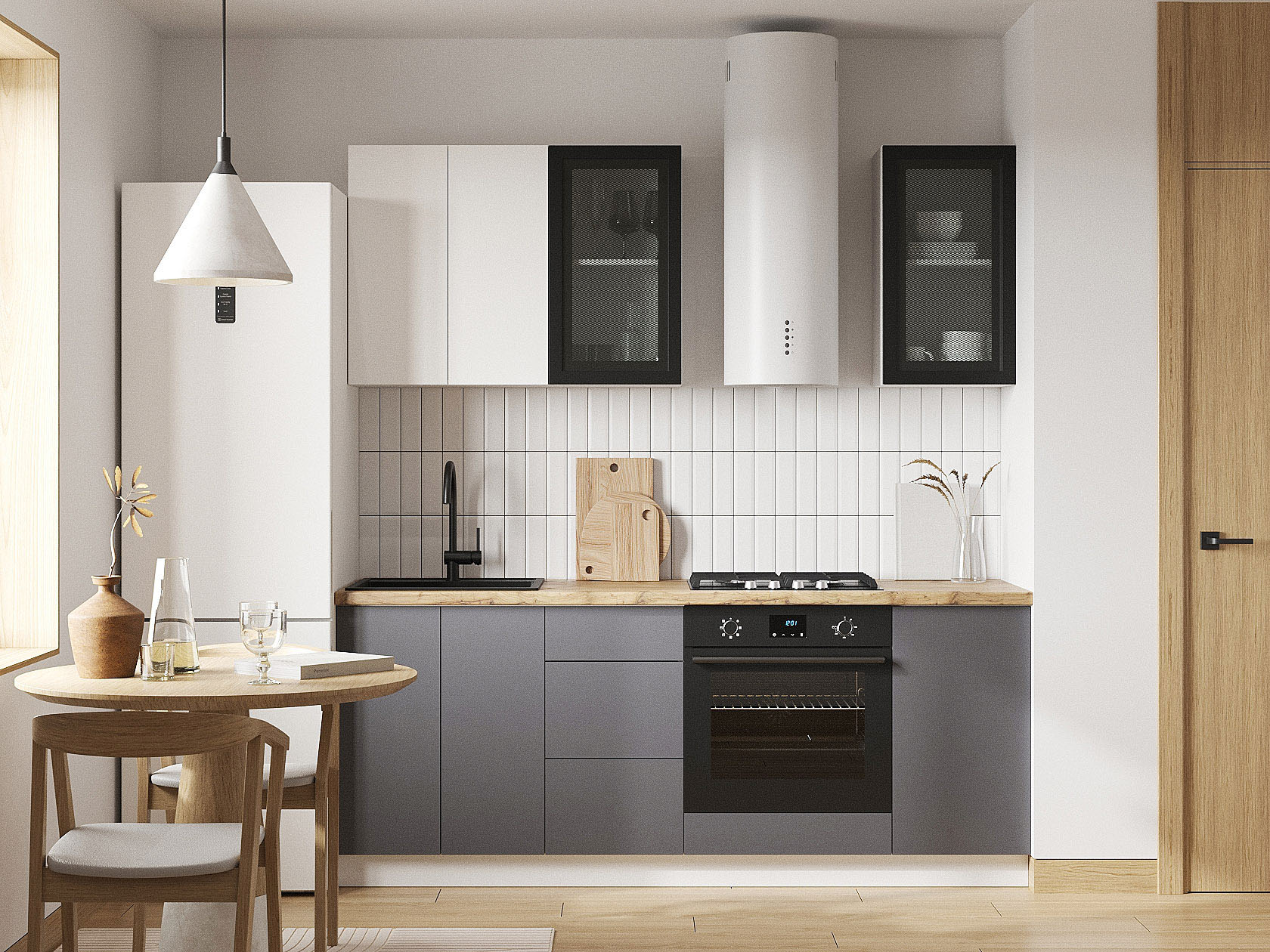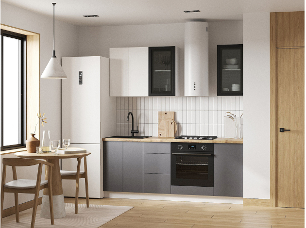 Кухонный гарнитур Модерн 200 см Белый / Черный матовый / Бланж / Графит