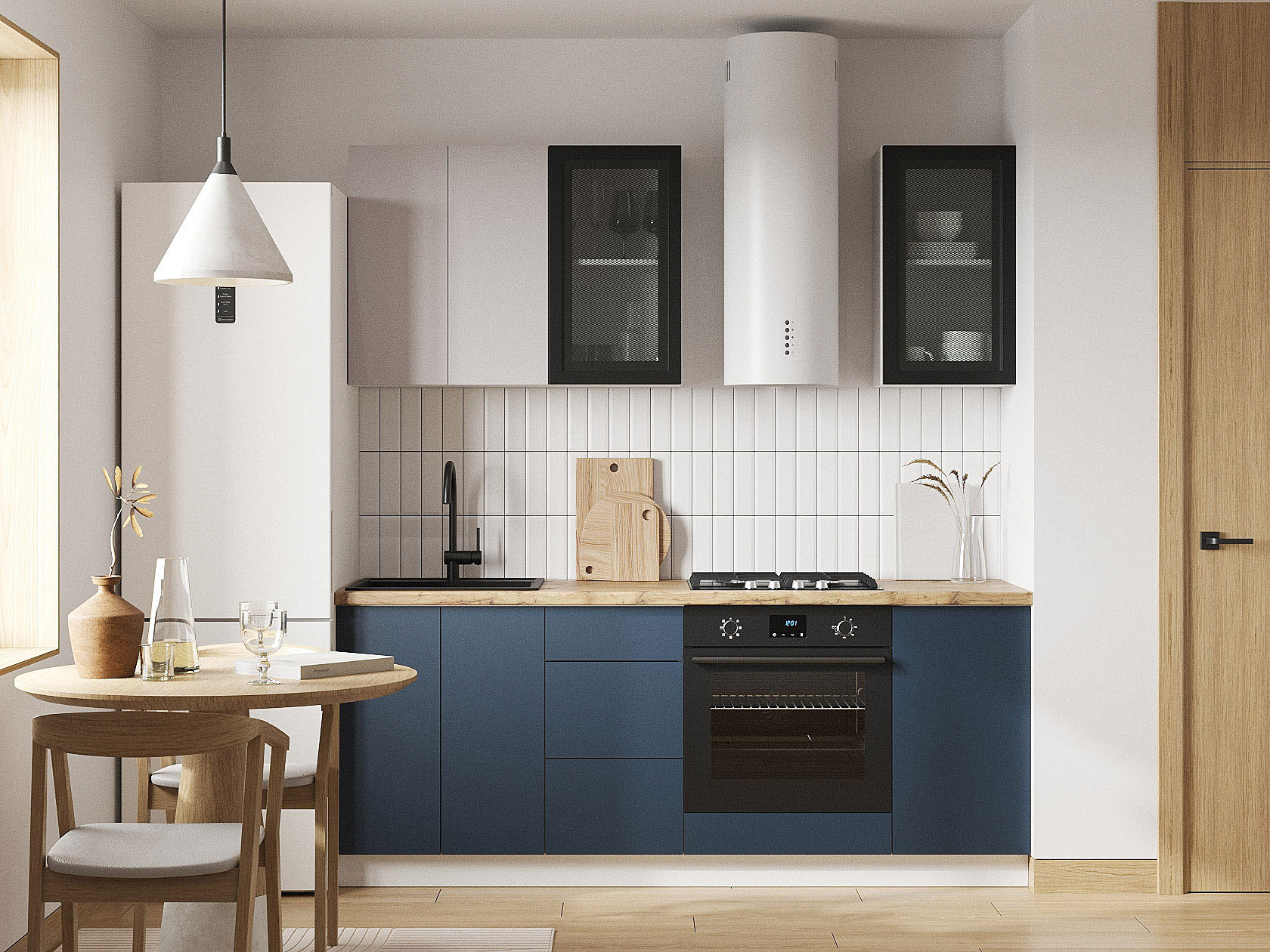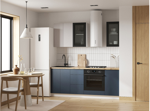 Кухонный гарнитур Модерн 200 см Белый / Черный матовый / Нео / Океания