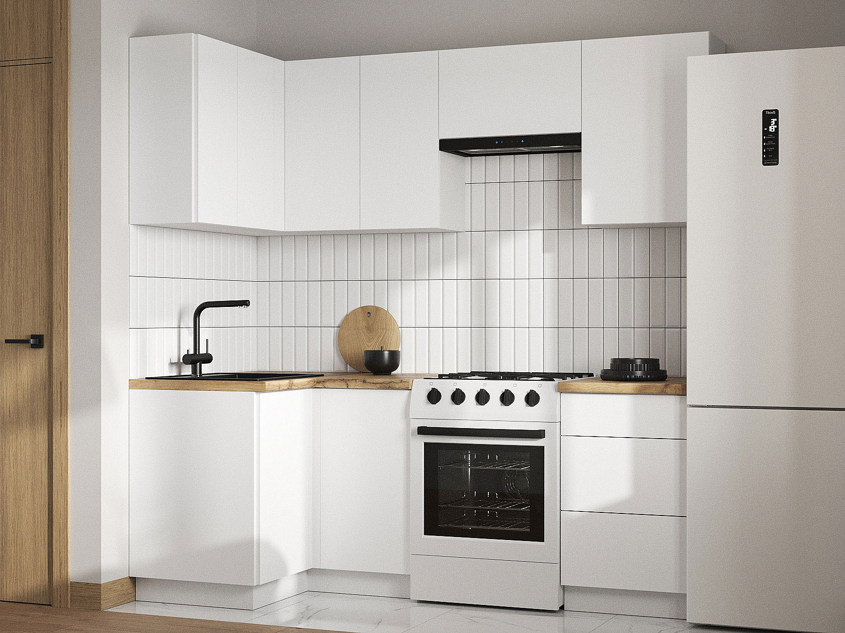 Кухонный гарнитур Модерн 210х100 см Белый / Белый глянец
