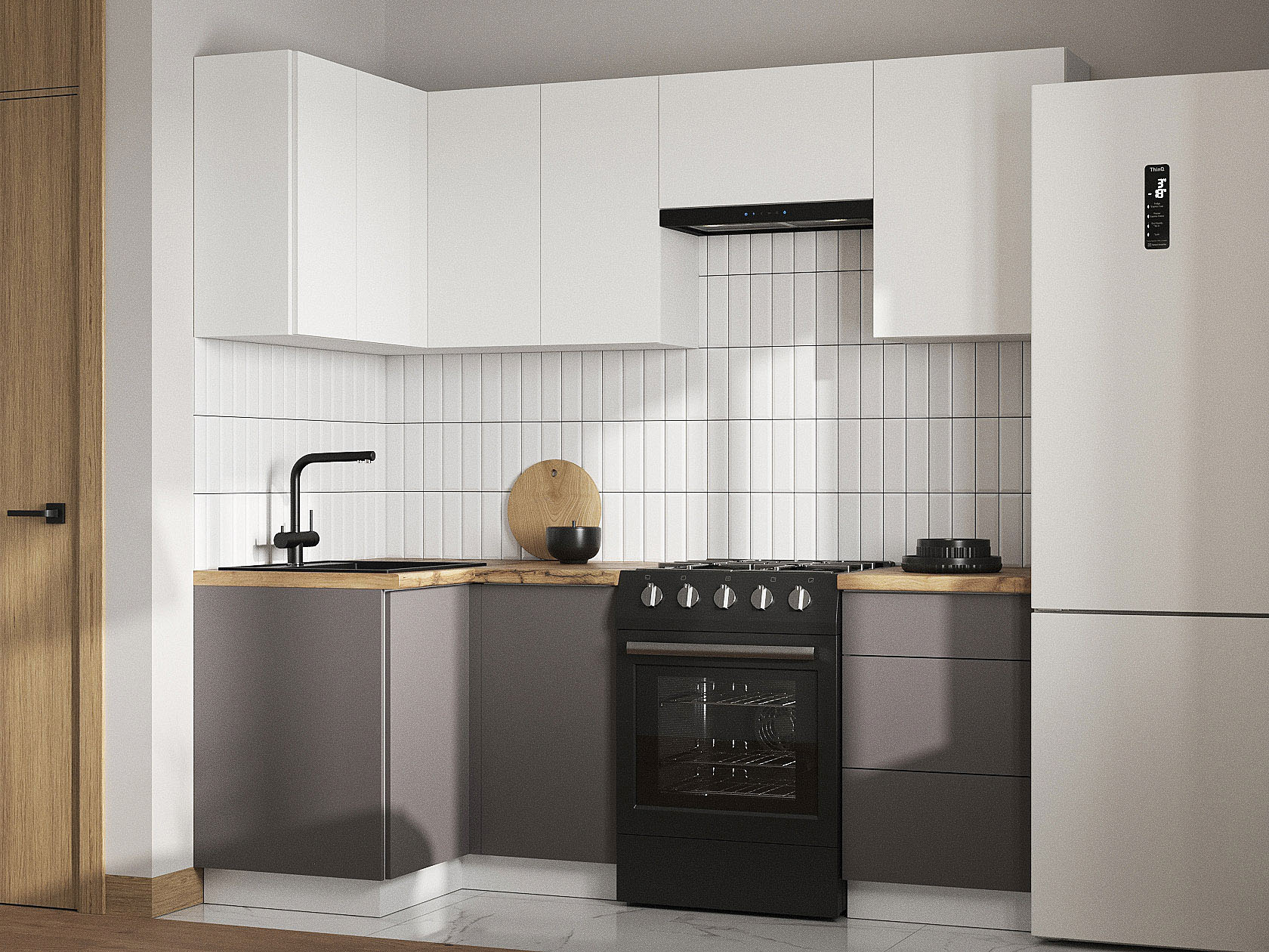 Кухонный гарнитур Модерн 210х100 см Белый / Бланж / Грей