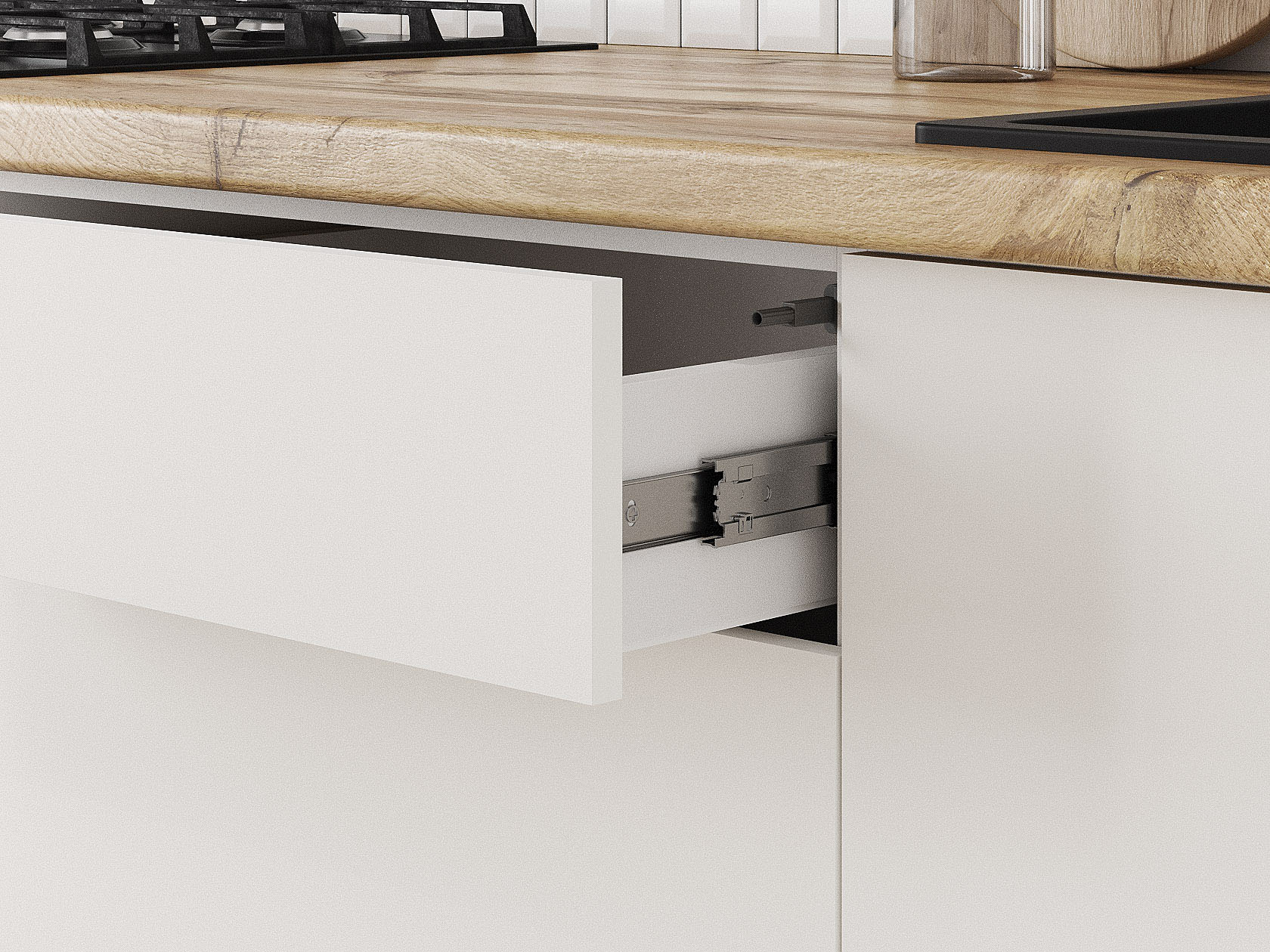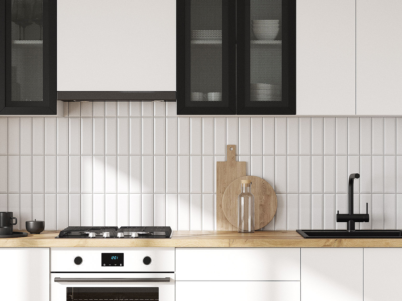 Кухонный гарнитур Модерн 240 см Белый / Черный матовый / Бланж