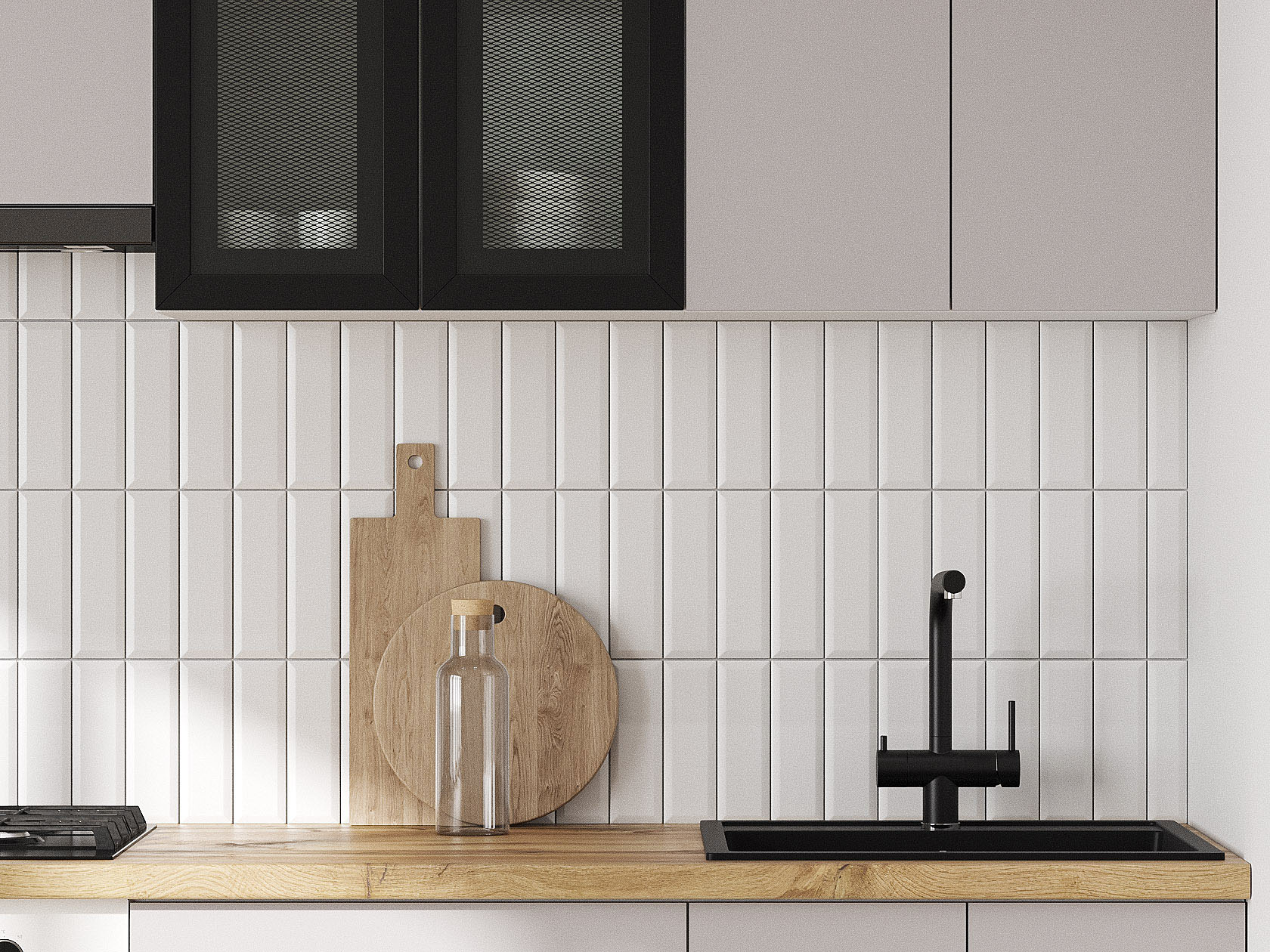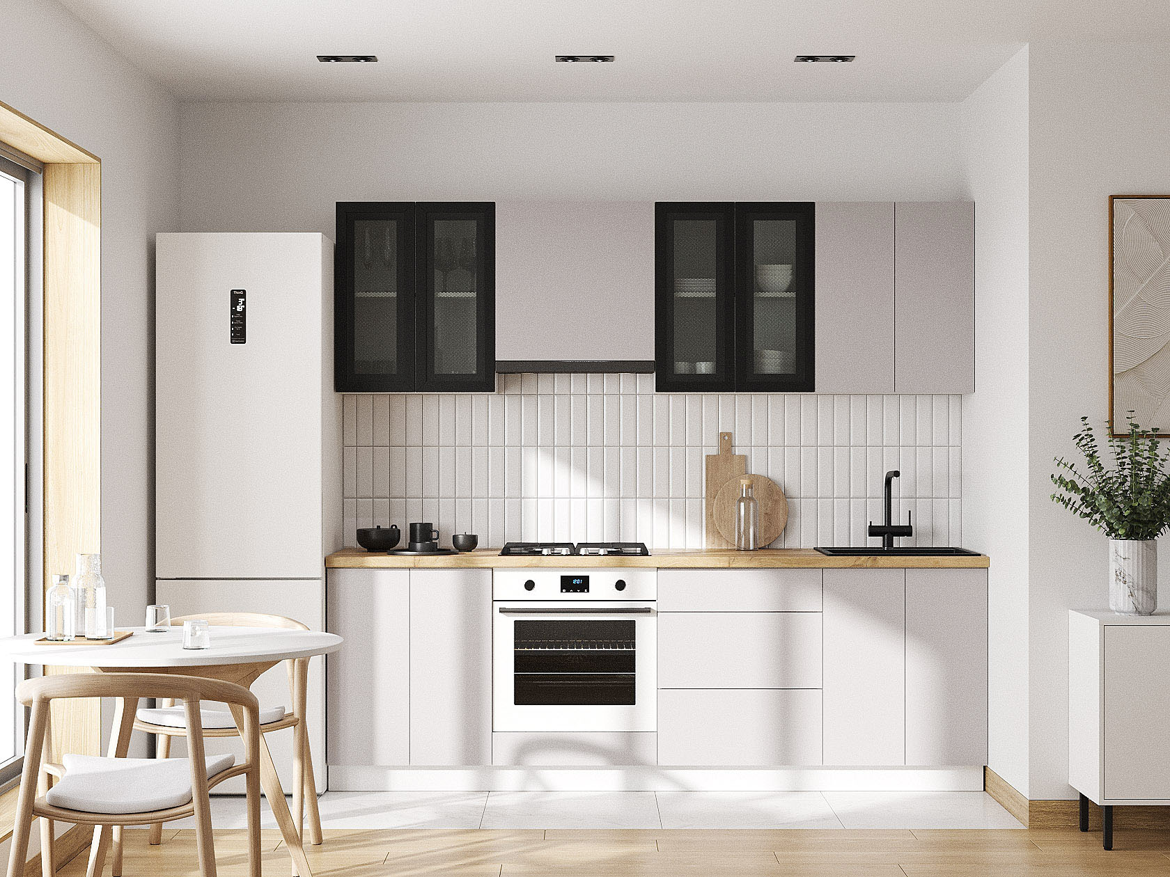 Кухонный гарнитур Модерн 240 см Белый / Черный матовый / Нео