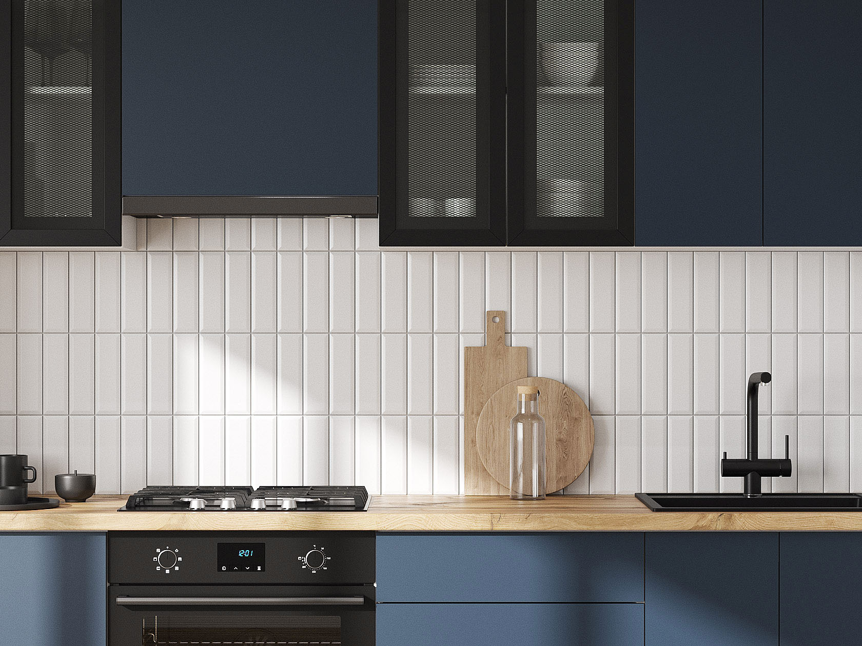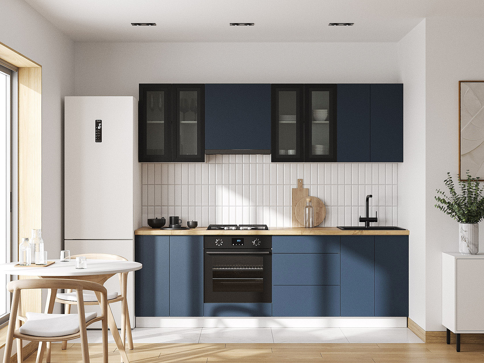 Кухонный гарнитур Модерн 240 см Белый / Черный матовый / Океания