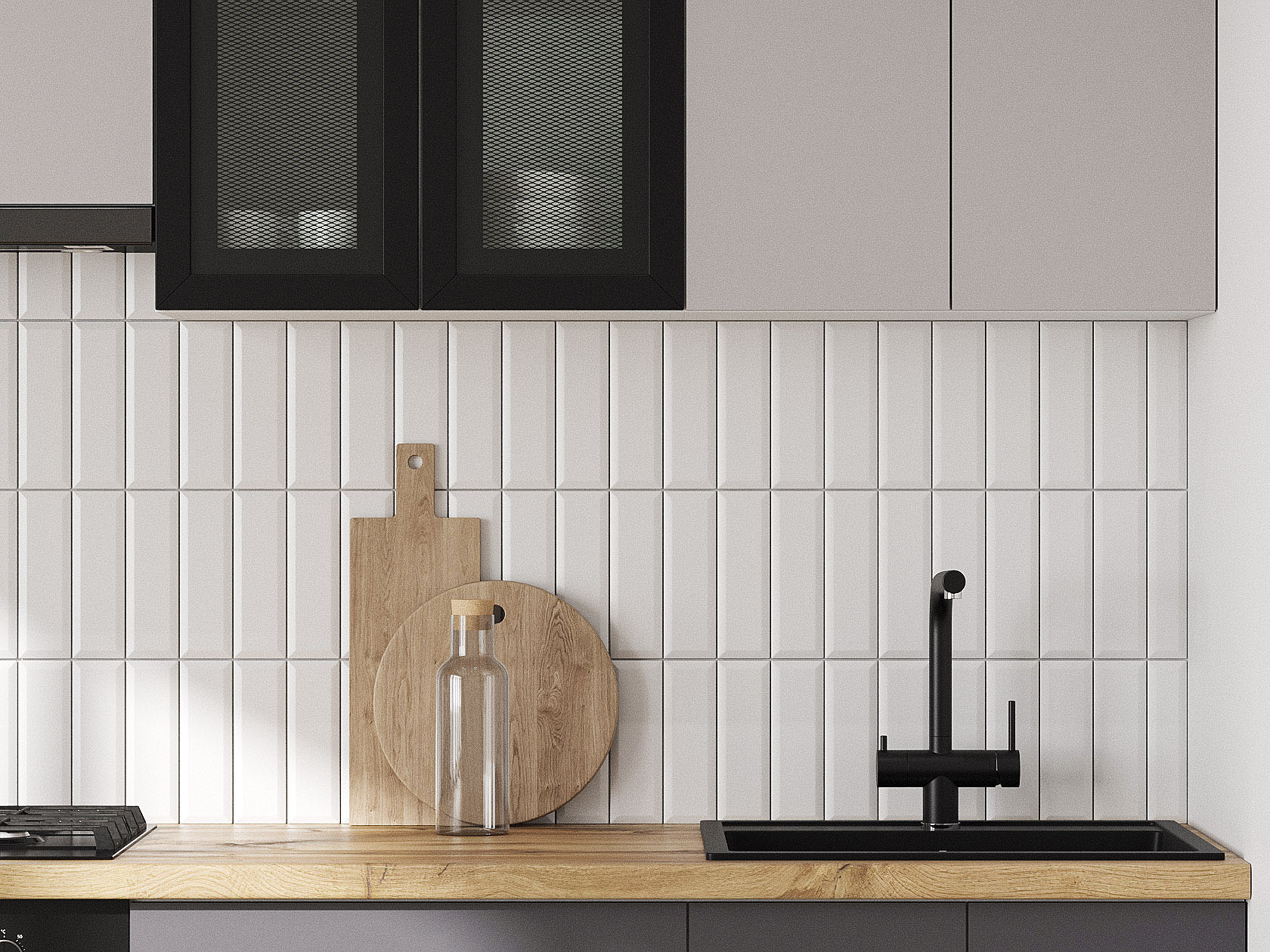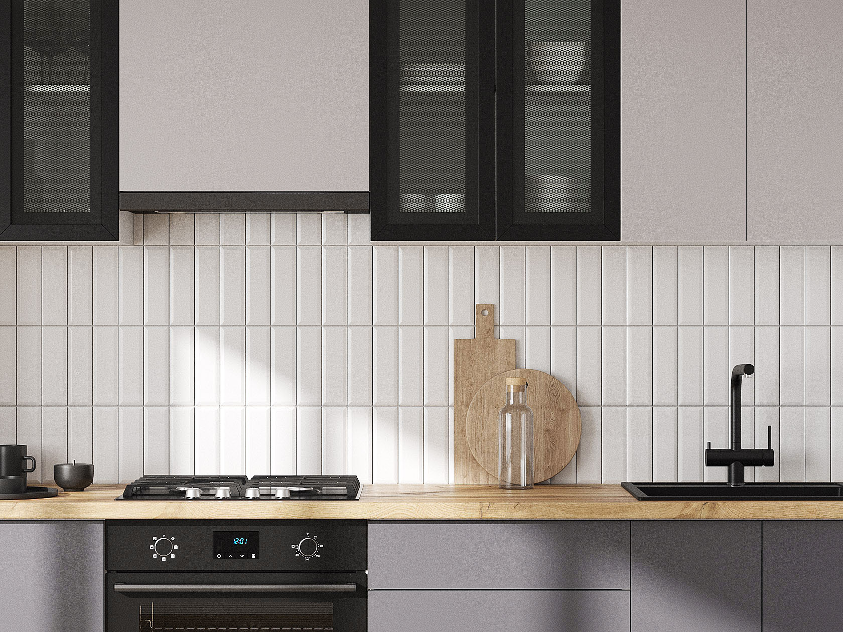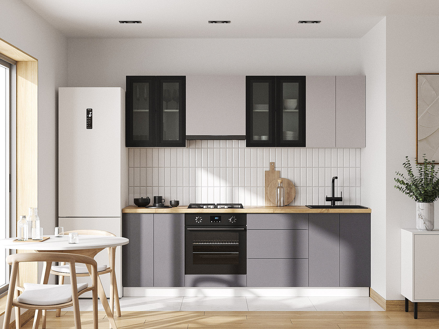 Кухонный гарнитур Модерн 240 см Белый / Черный матовый / Нео / Графит