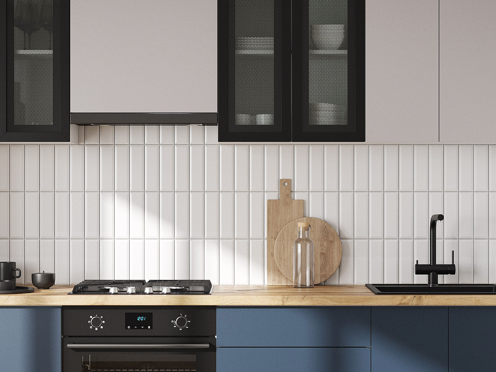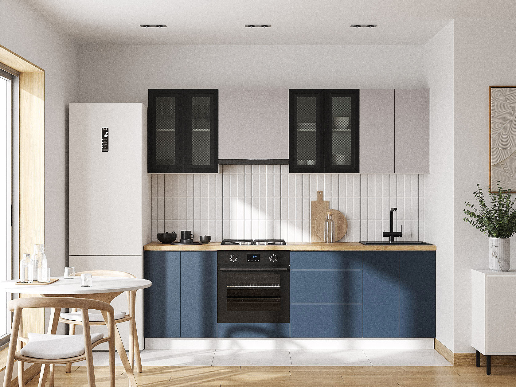 Кухонный гарнитур Модерн 240 см Белый / Черный матовый / Нео / Океания