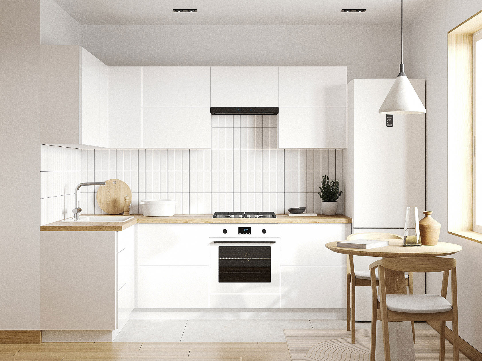 Кухонный гарнитур Модерн 240х140 см станет практичным приобретением на долгие годы. Конфигурация элементов позволяет создать комфортные условия для приготовления пищи и соблюсти правило рабочего треугольника. За фасадами легко ухаживать, а отсутствие ручек поддерживает тренд на лаконичность.