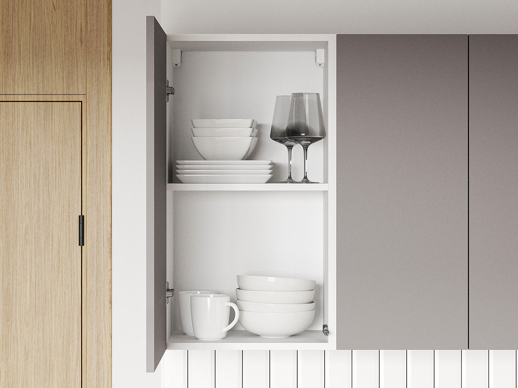 - Фурнитура дверок: накладные петли с доводчиком, подъемник с газовым кронштейном.