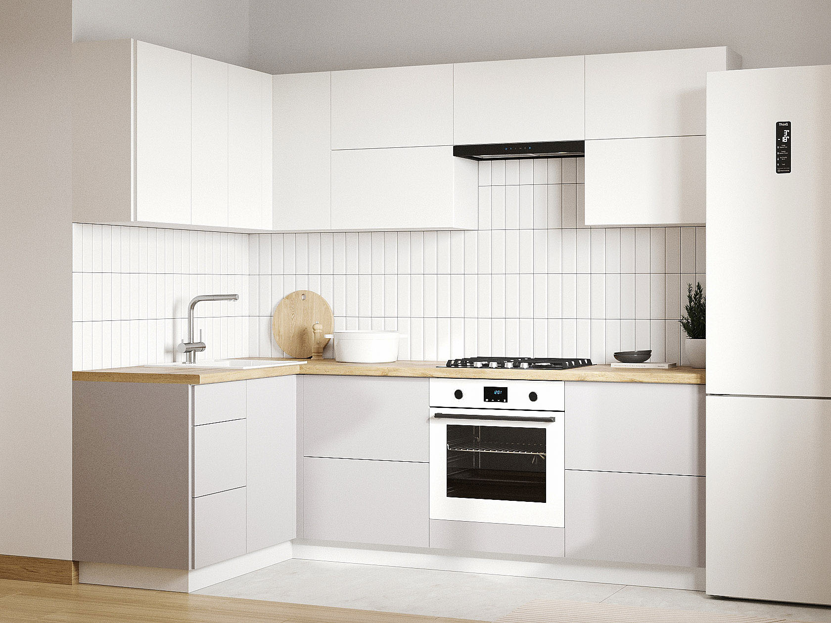 Кухонный гарнитур Модерн 240х140 см Белый / Бланж / Нео