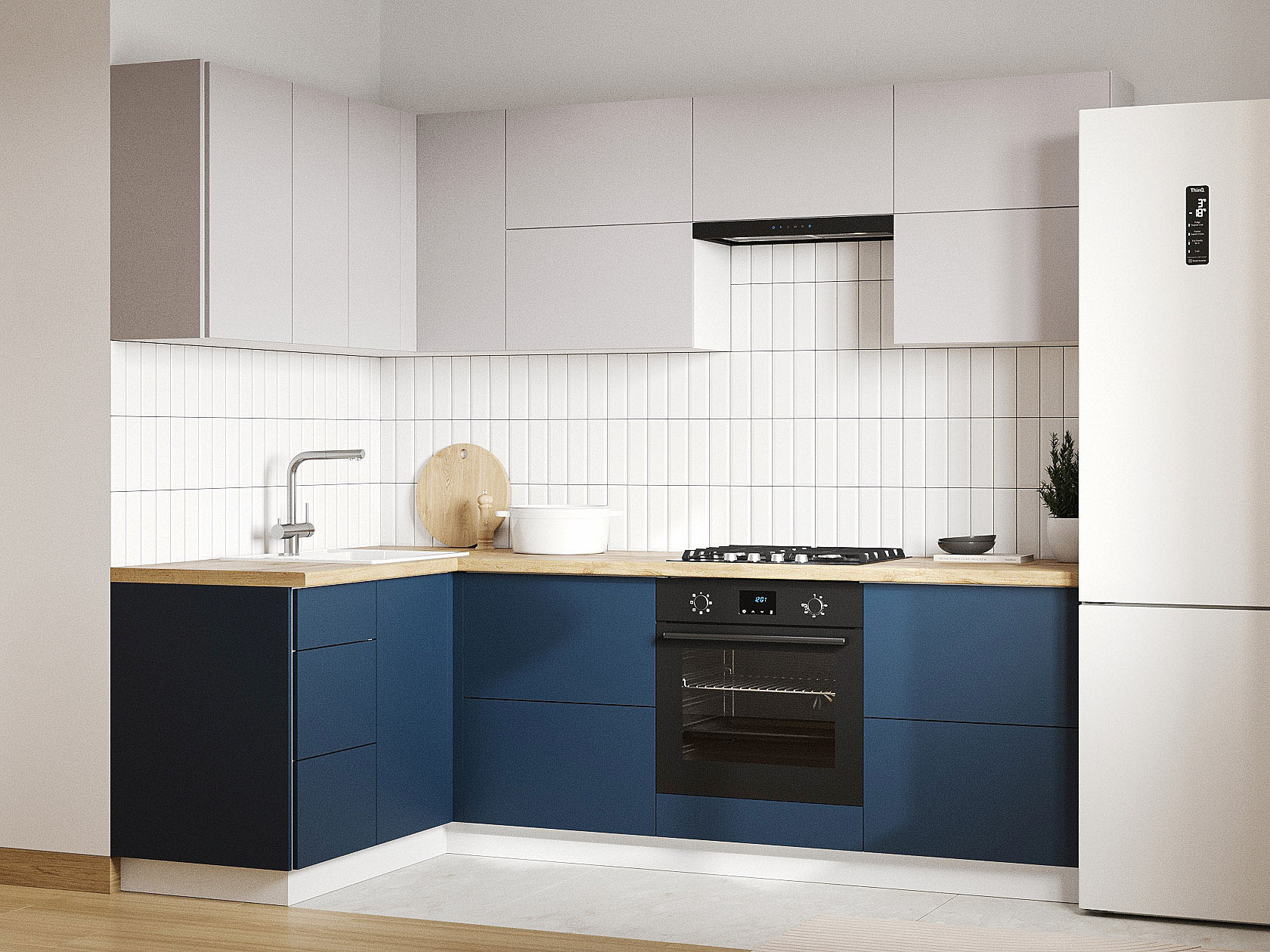 Кухонный гарнитур Модерн 240х140 см Белый / Нео / Океания