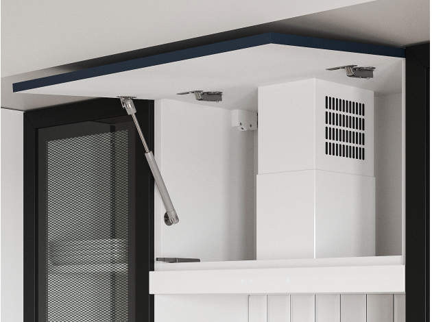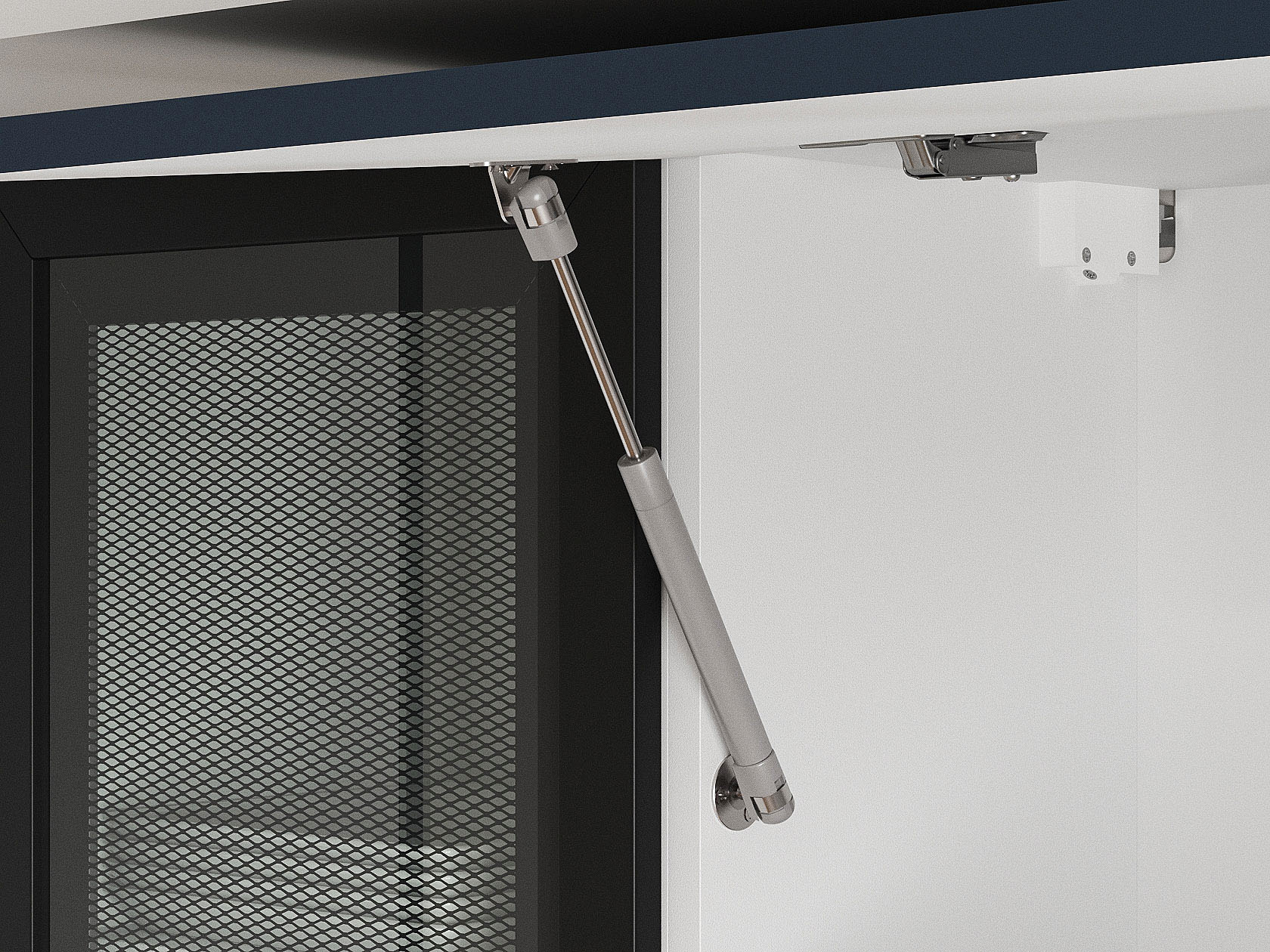 - Фурнитура дверок: накладные петли с доводчиком, подъемник с газовым кронштейном.