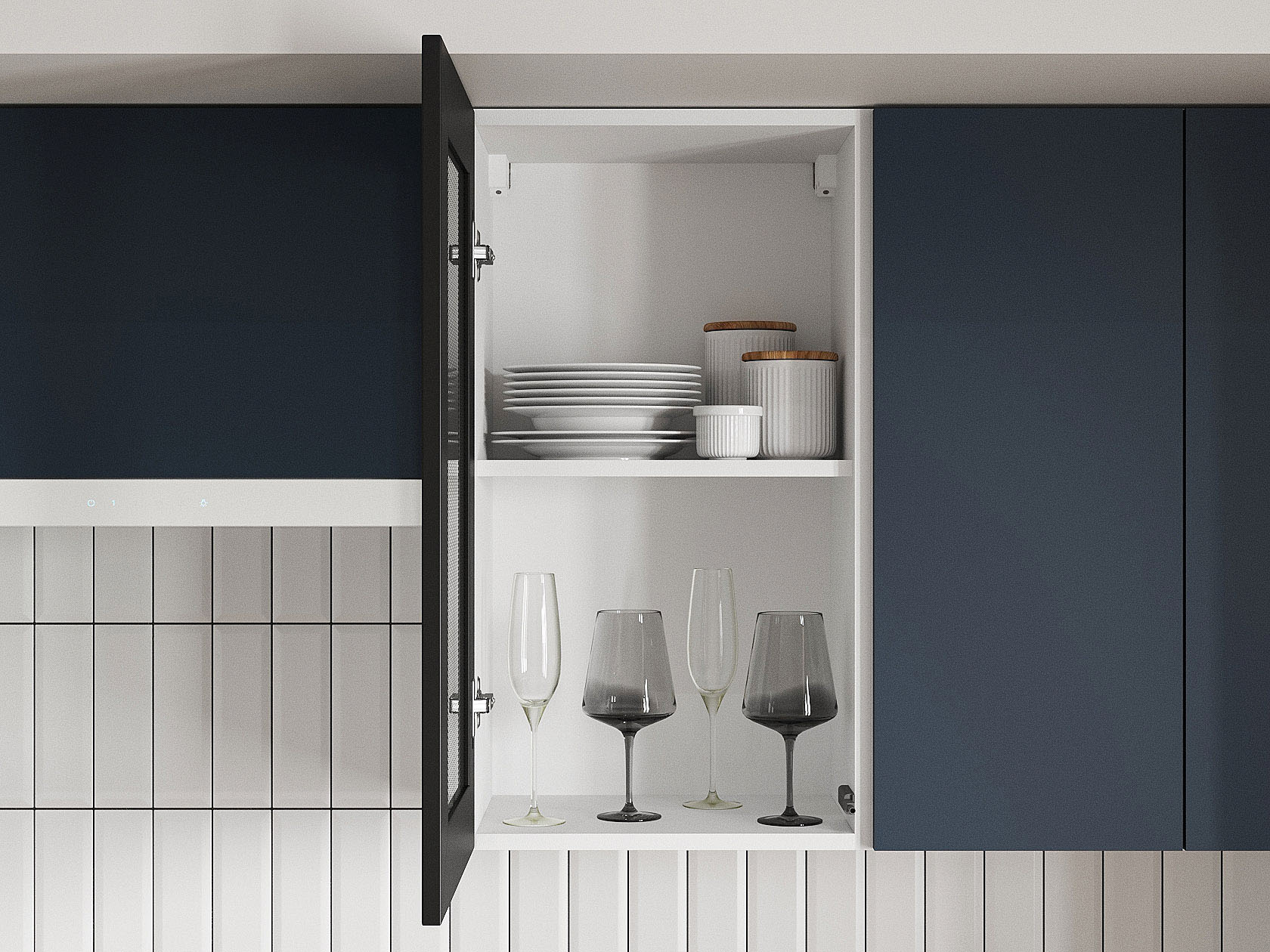 - Материал фасадов: МДФ 16 мм в пленке ПВХ, алюминий со стеклом.