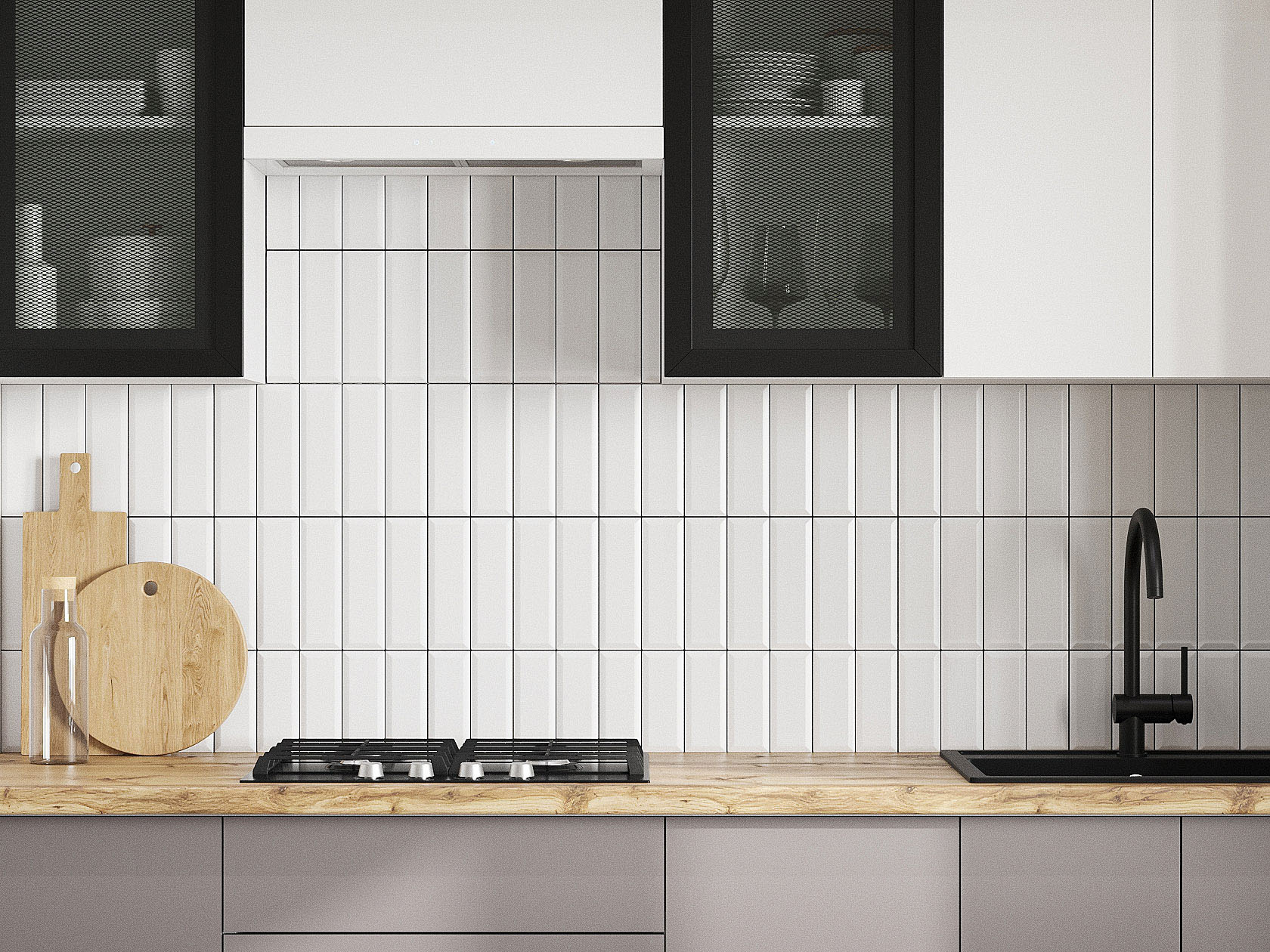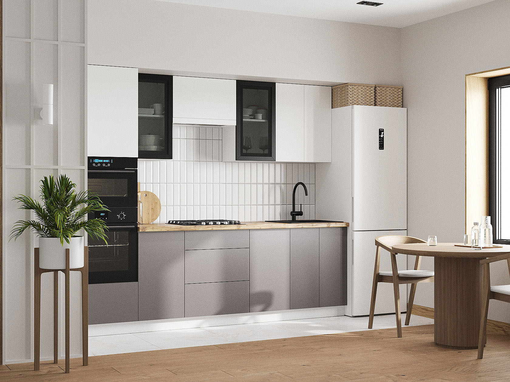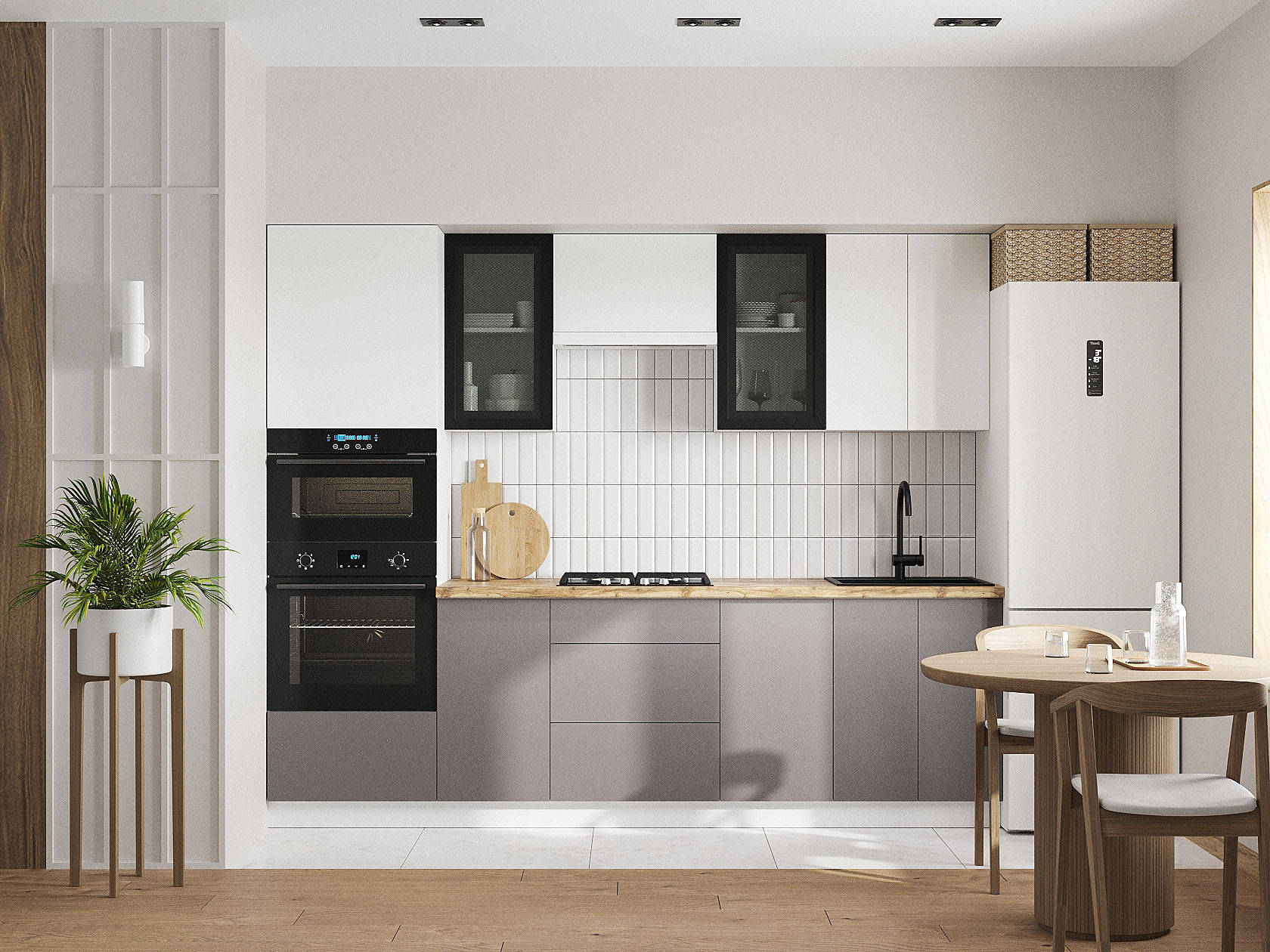 Кухонный гарнитур Модерн 260 см Белый / Черный матовый / Бланж / Грей