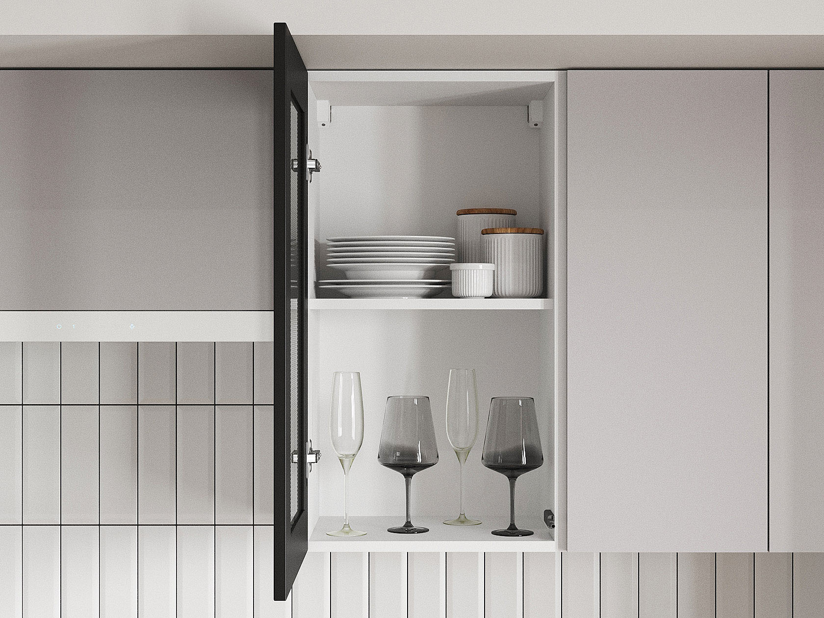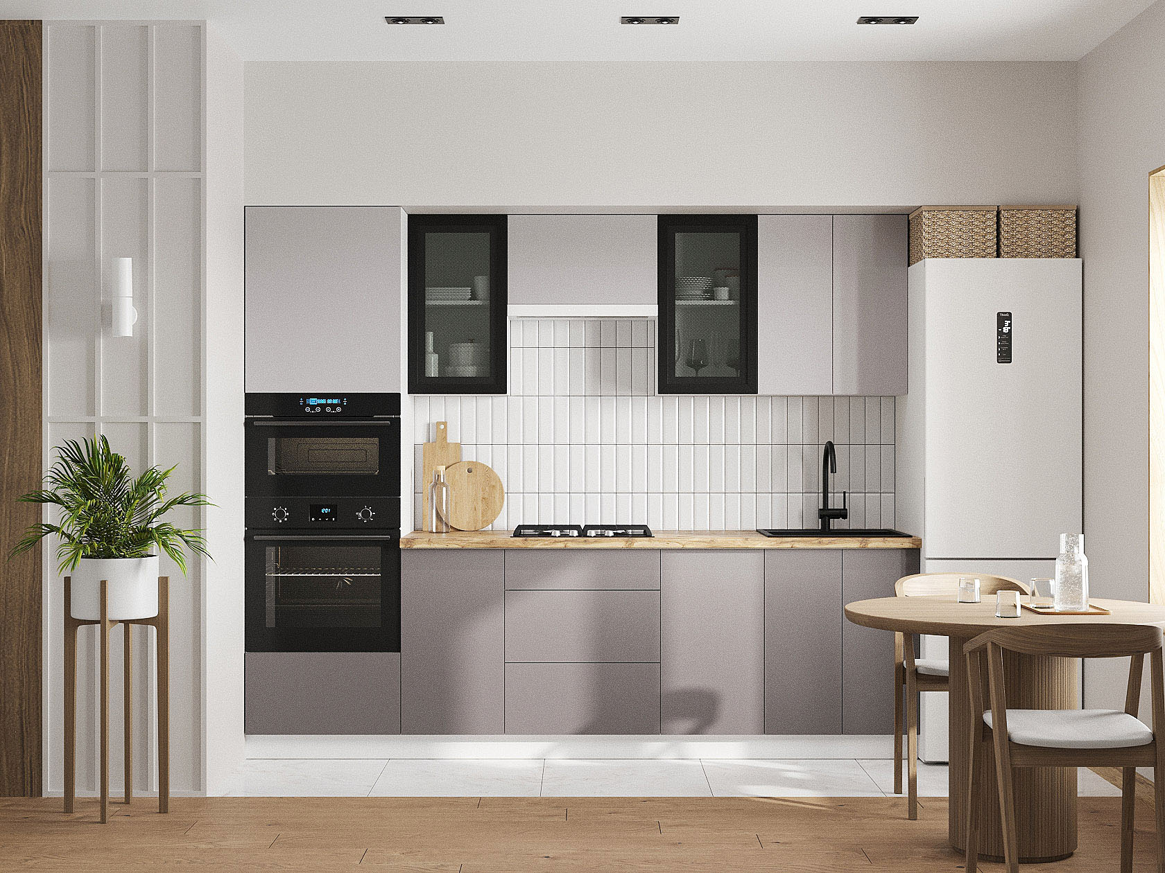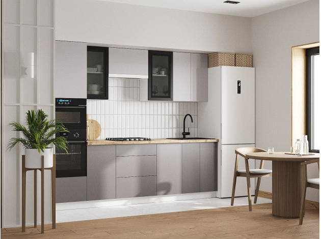 Кухонный гарнитур Модерн 260 см Белый / Черный матовый / Нео / Грей