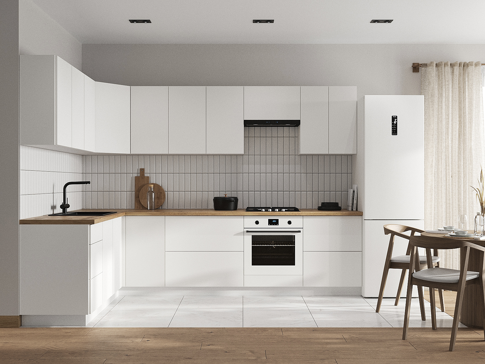 Кухонный гарнитур Модерн 300х180 см Белый / Бланж