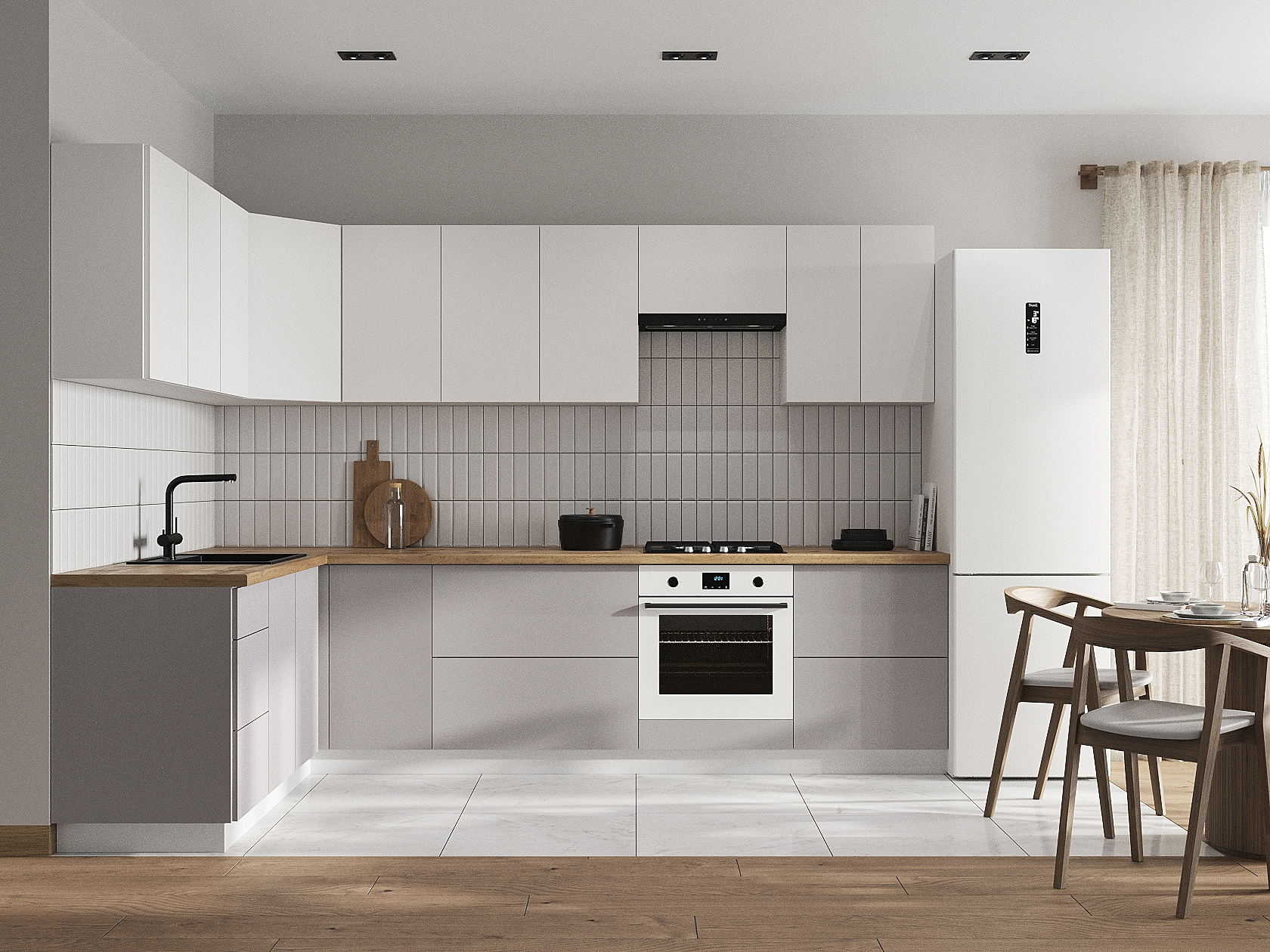 Кухонный гарнитур Модерн 300х180 см Белый / Бланж / Нео
