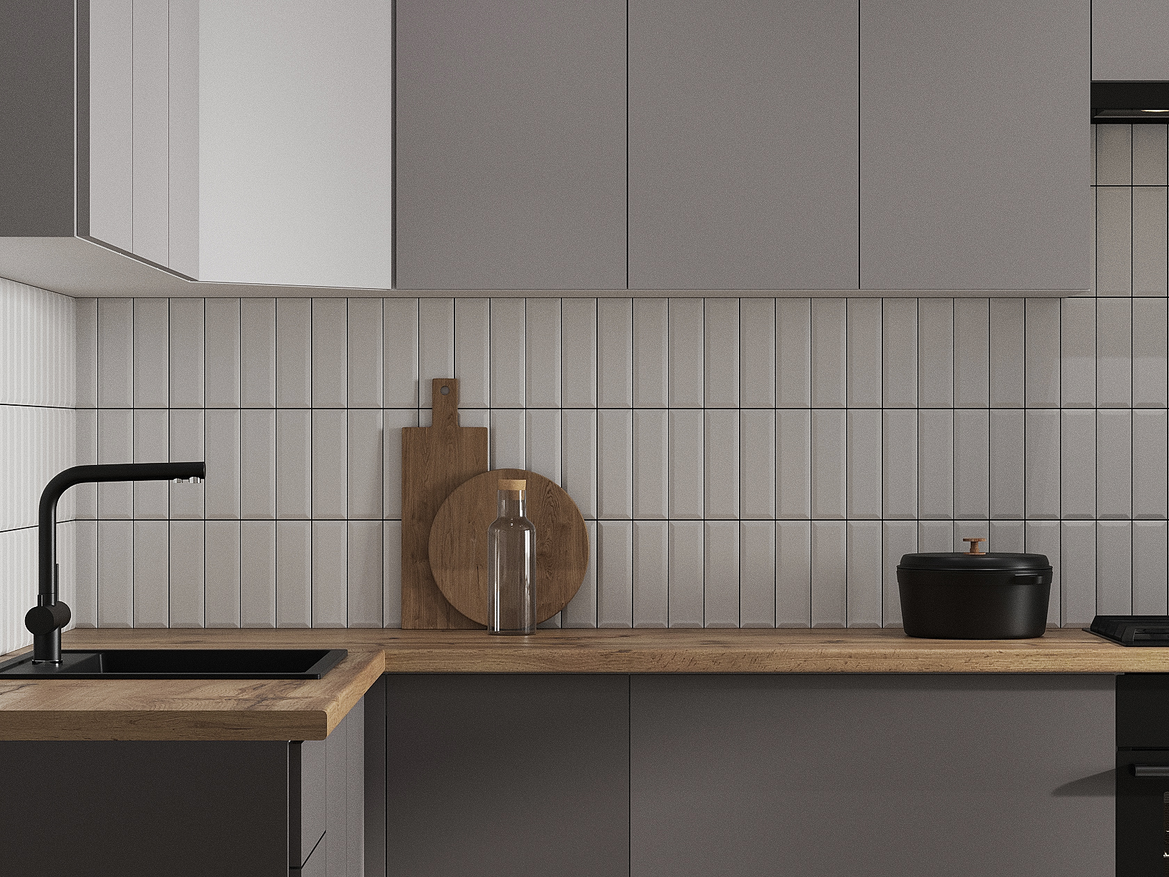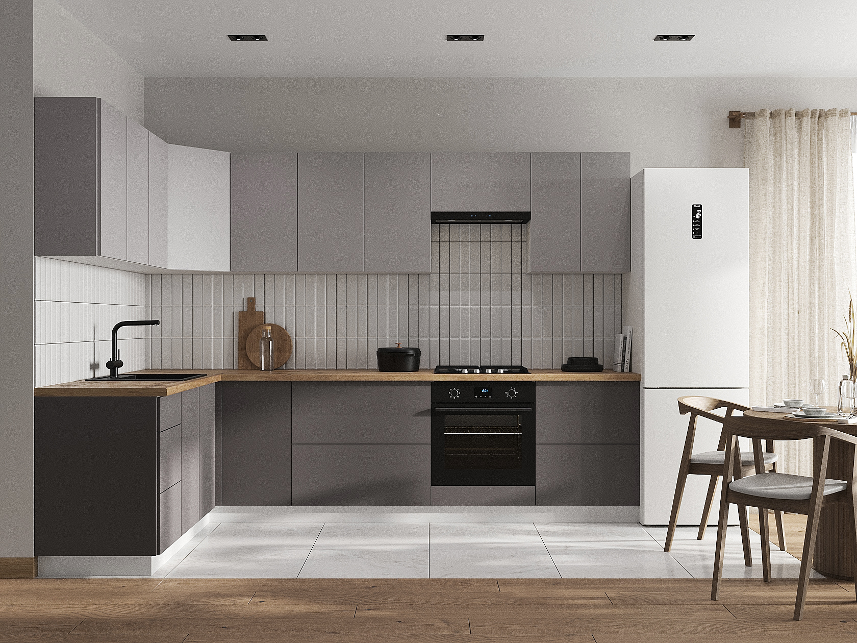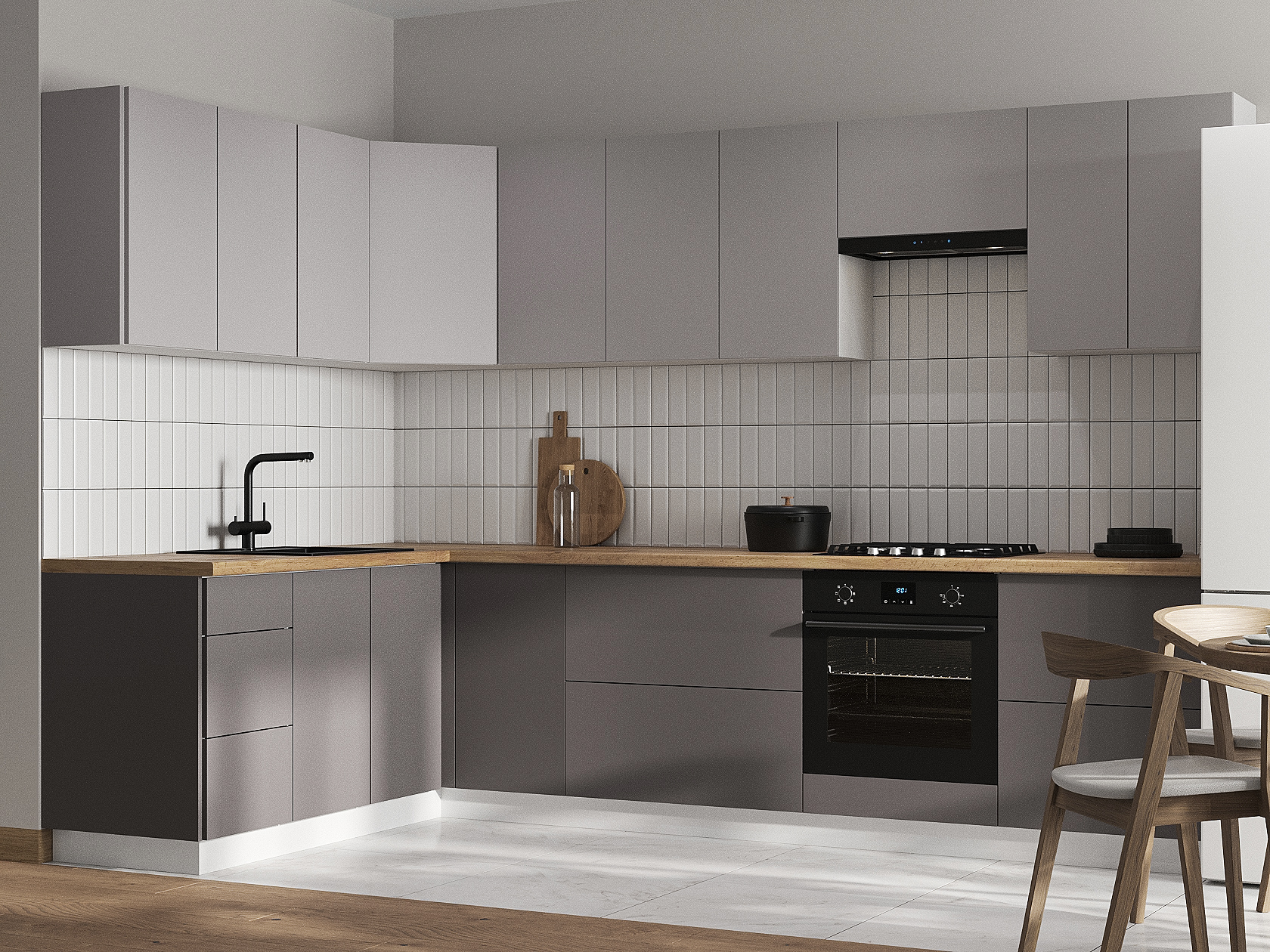 Кухонный гарнитур Модерн 300х180 см Белый / Нео / Грей