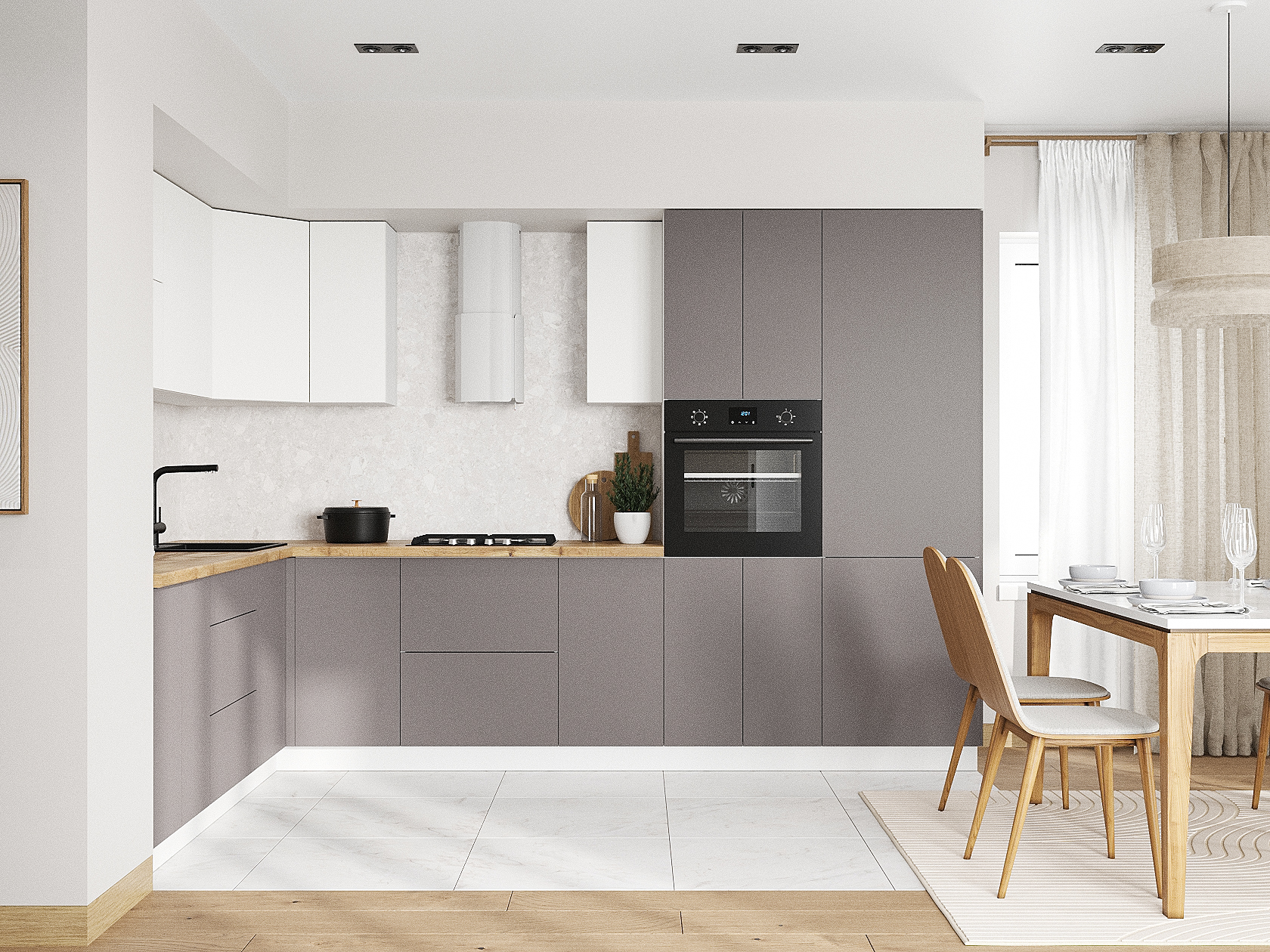 Кухонный гарнитур Модерн 320х220 см Белый / Бланж / Грей