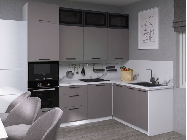 Кухонный гарнитур Модерн 240х160 см Белый / Черный матовый / Грей