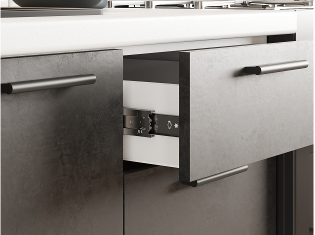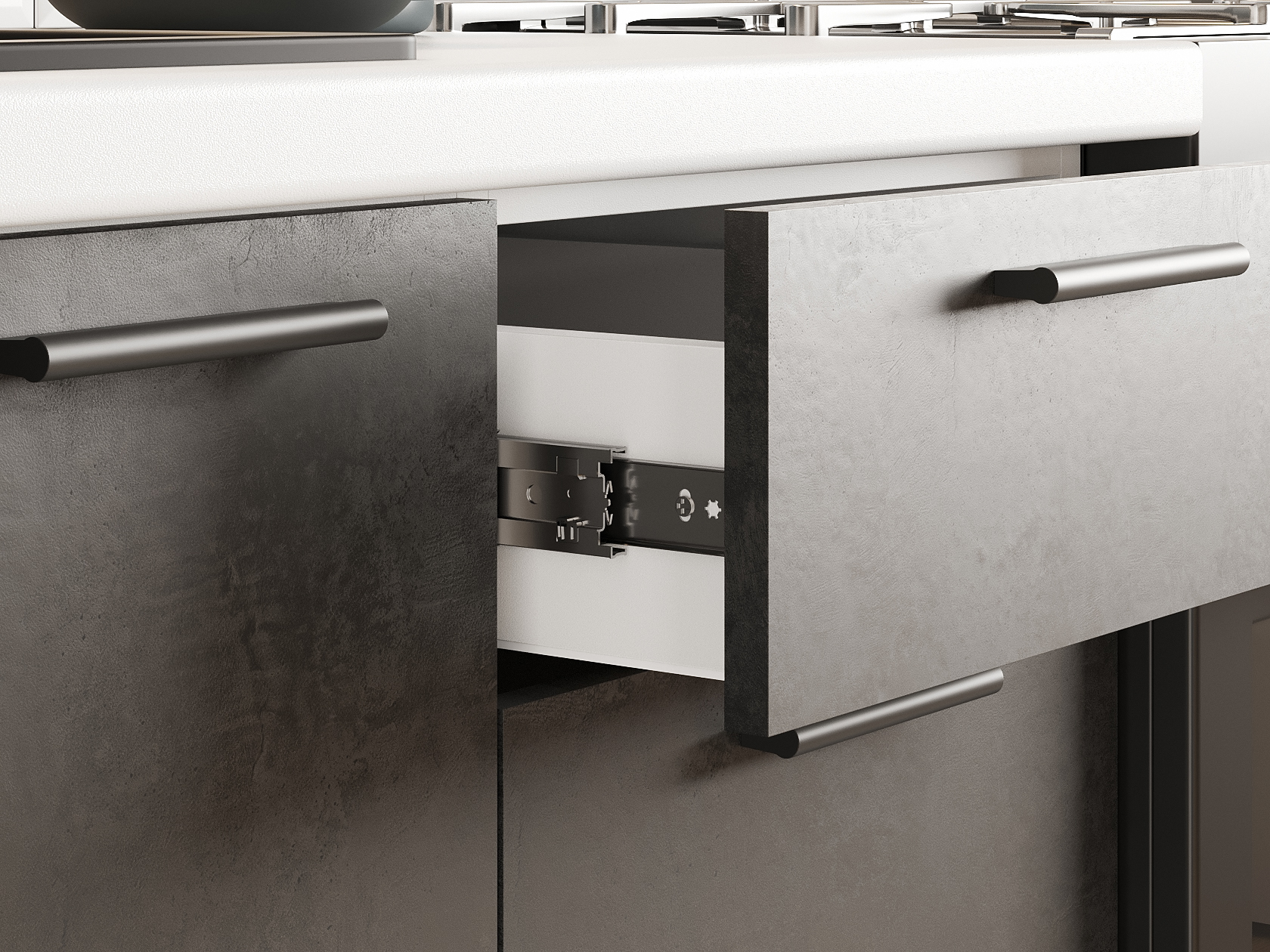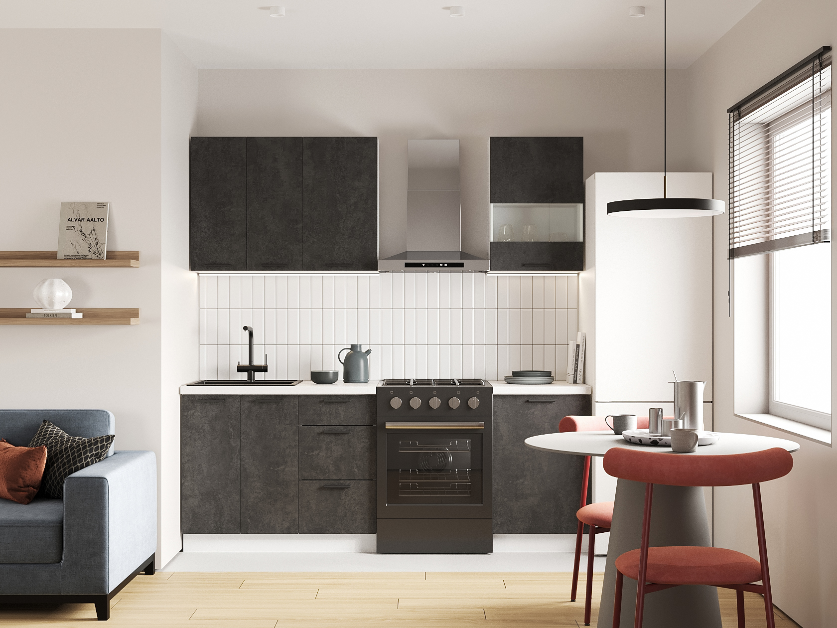 Кухонный гарнитур Модус 150 см со стеклом Белый / Цемент темный со стеклом