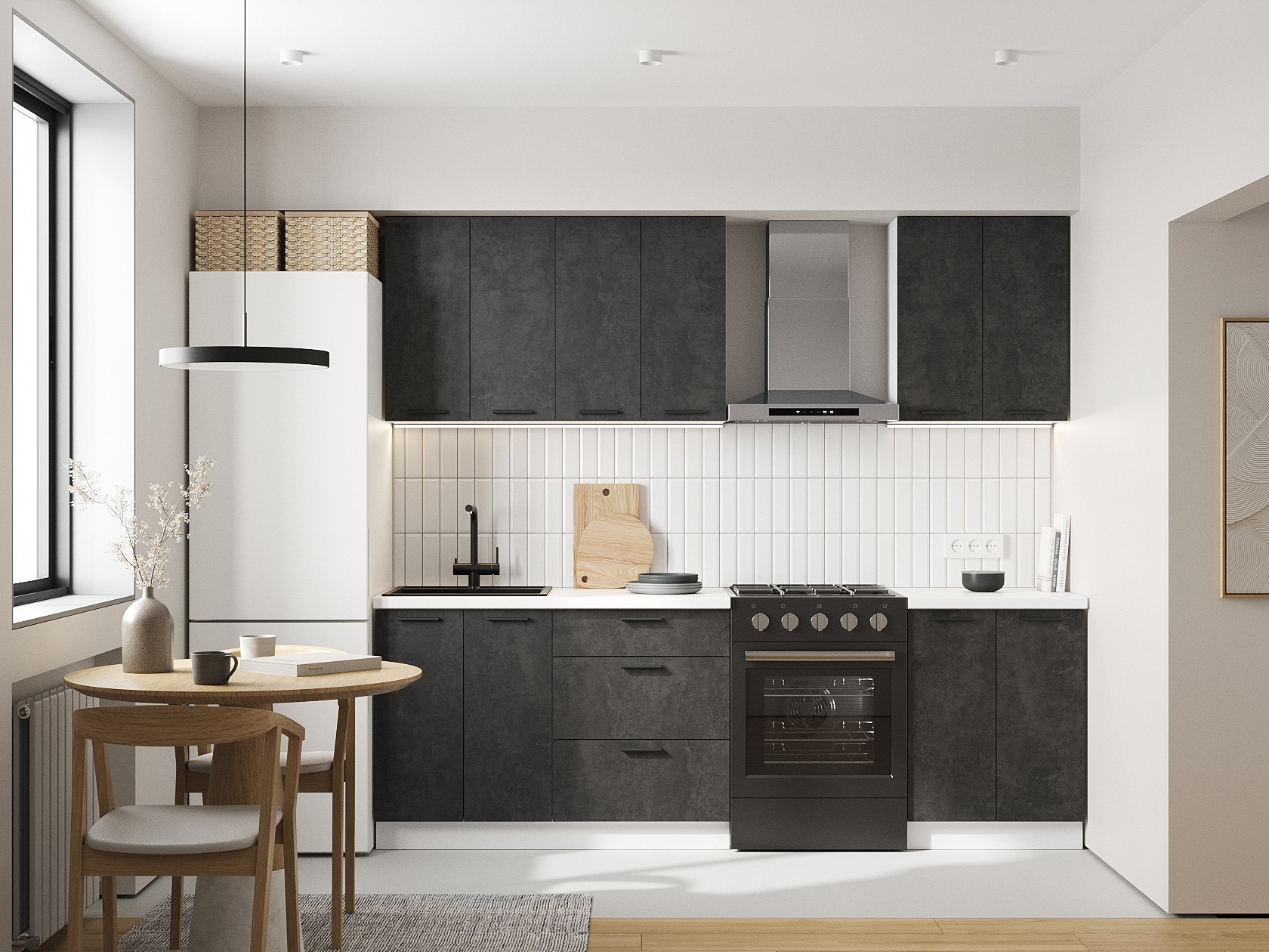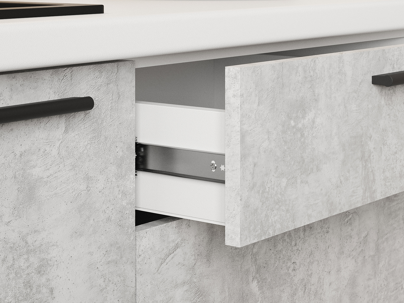 Кухонный гарнитур Модус 180 см с ящиками Белый / Цемент темный