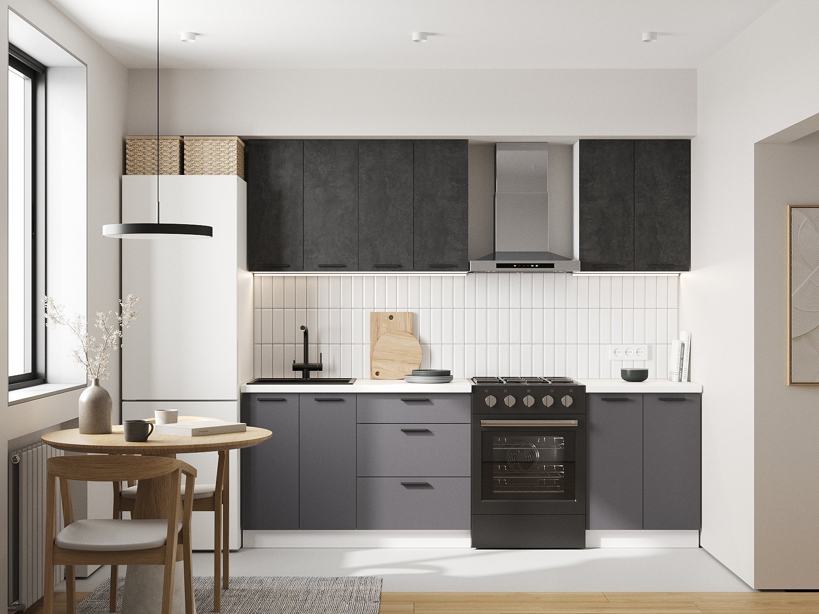 Кухонный гарнитур Модус 180 см с ящиками Белый / Цемент темный / Графит серый