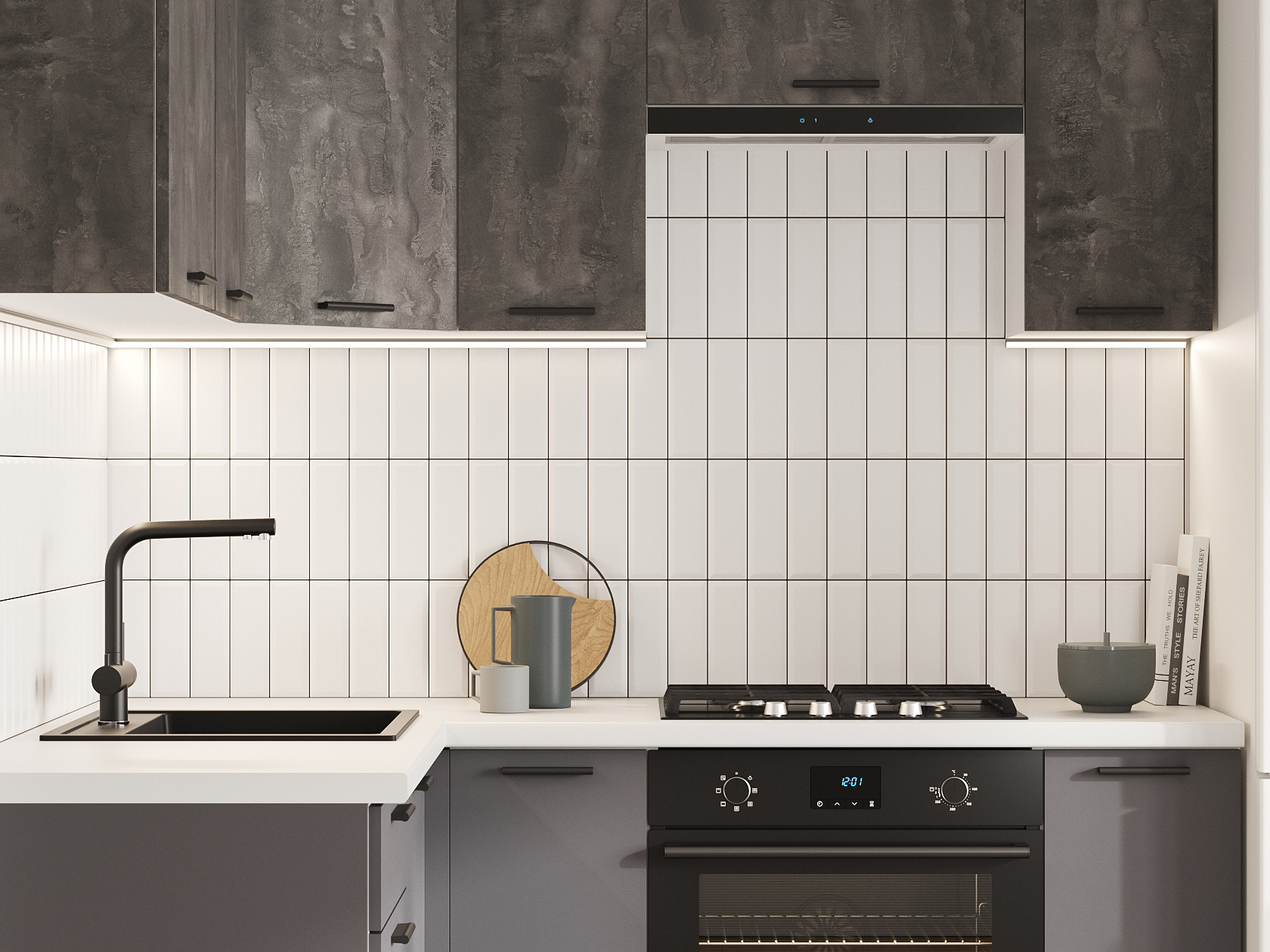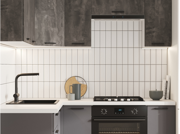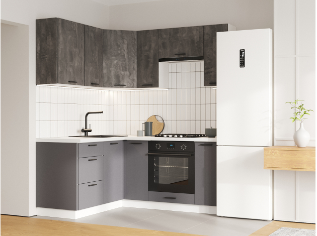 Кухонный гарнитур Модус 180х150 см Белый / Камень темный / Графит серый