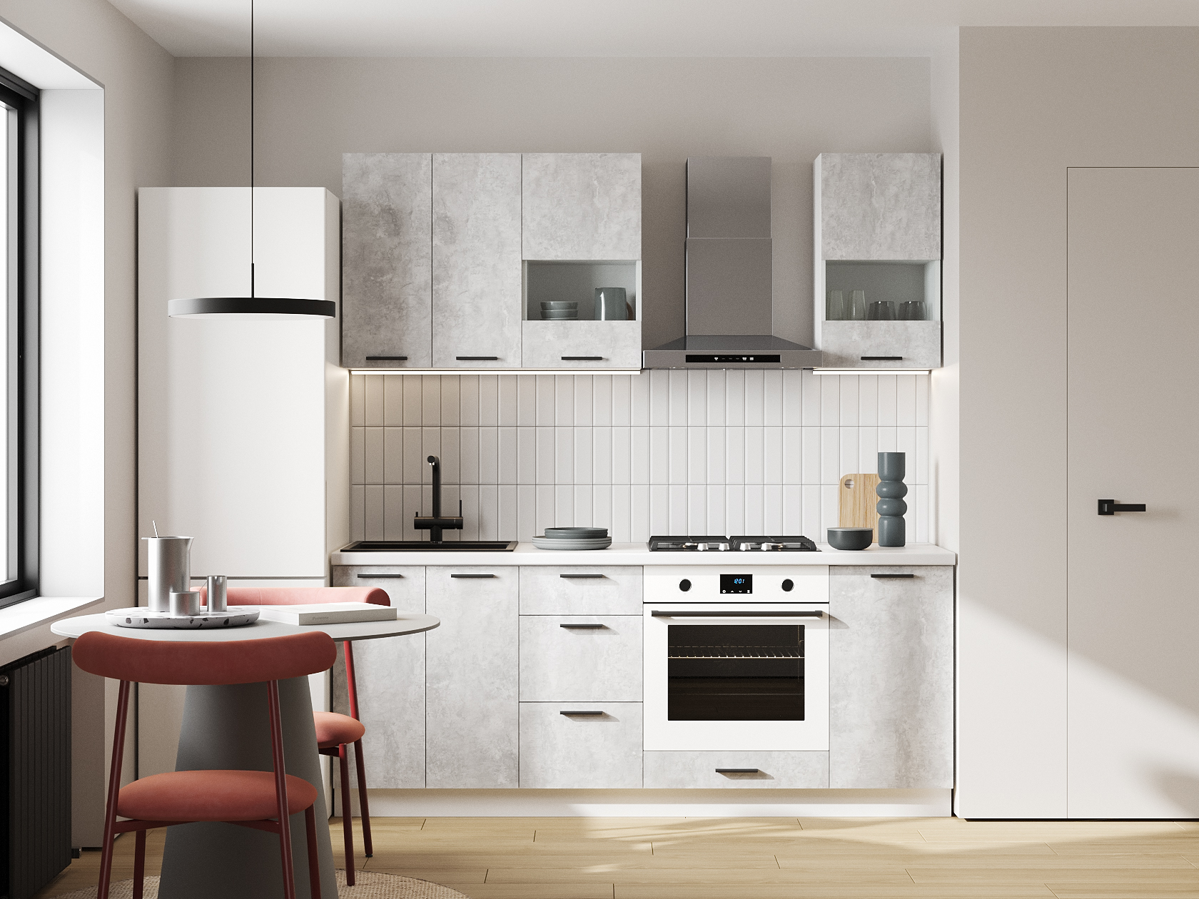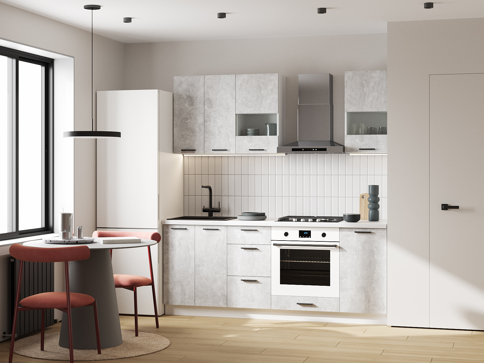 Кухонный гарнитур Модус 200 см Белый / Цемент светлый со стеклом