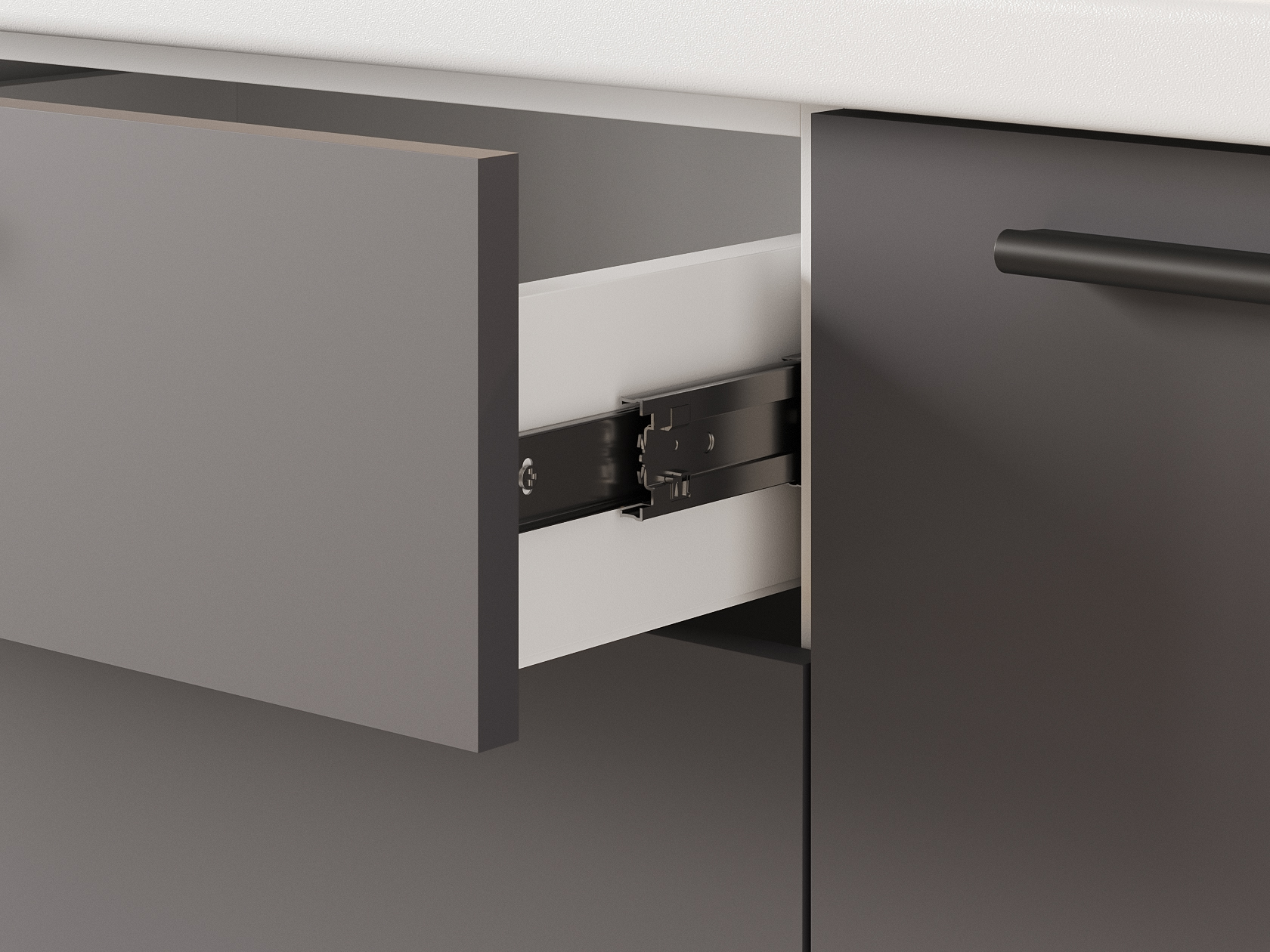 - Направляющие ящиков: шариковые.