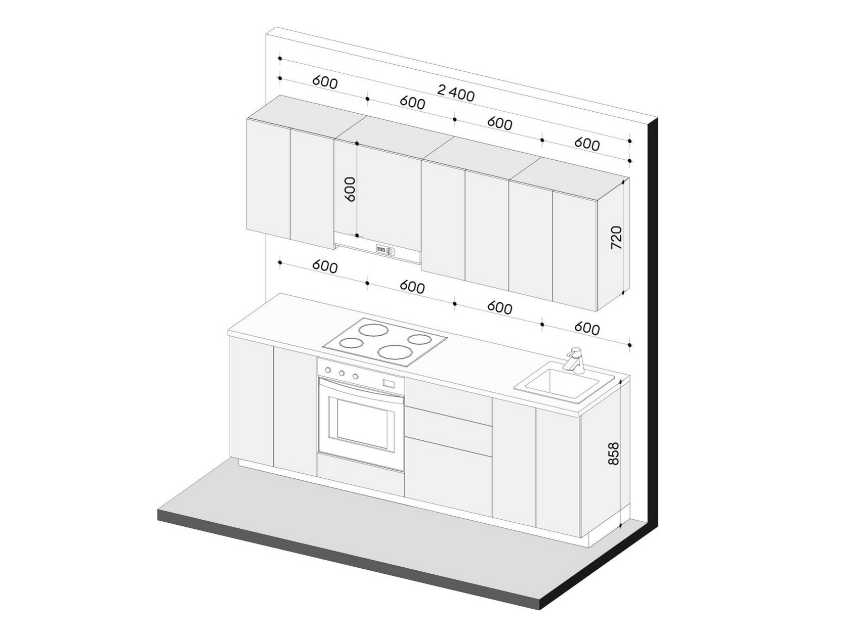 - Шкаф под вытяжку: 60 х 60 х 29,6 см.