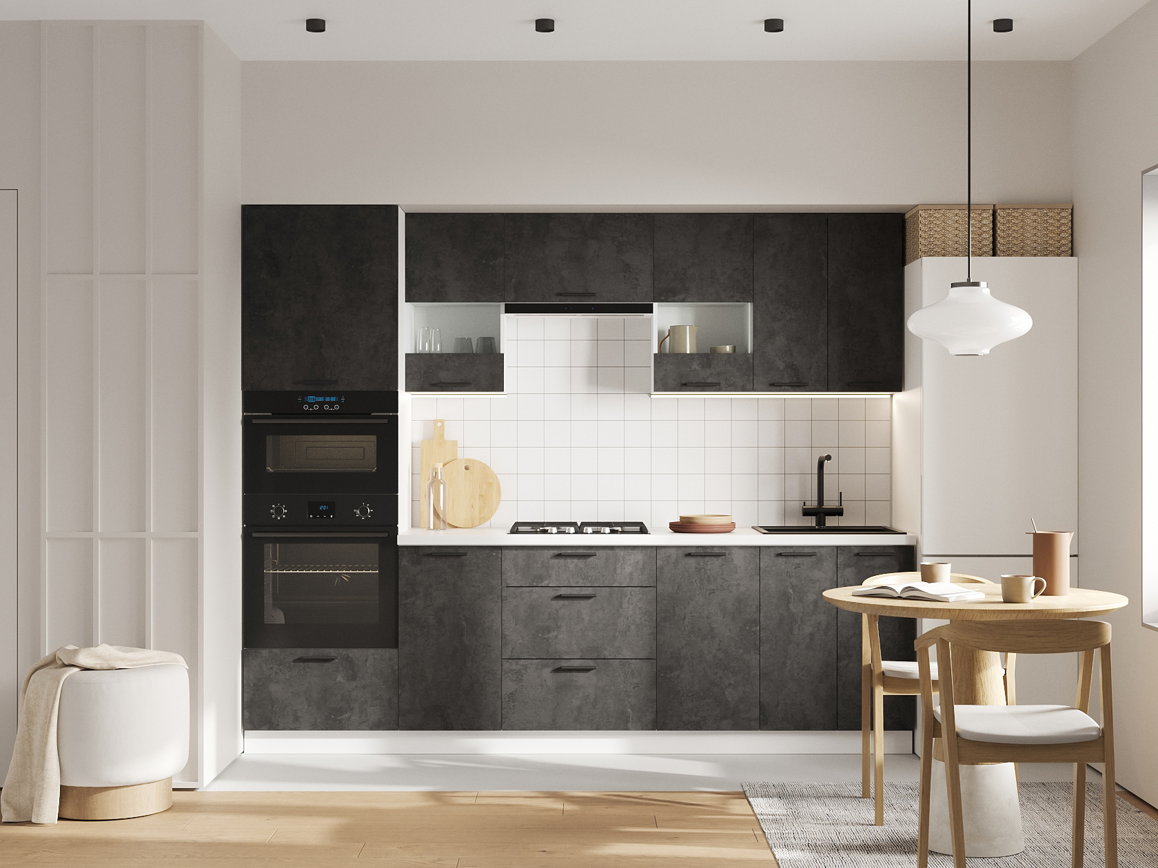 • Пенал под духовку и СВЧ: 214 х 60 х 56,2 см.
