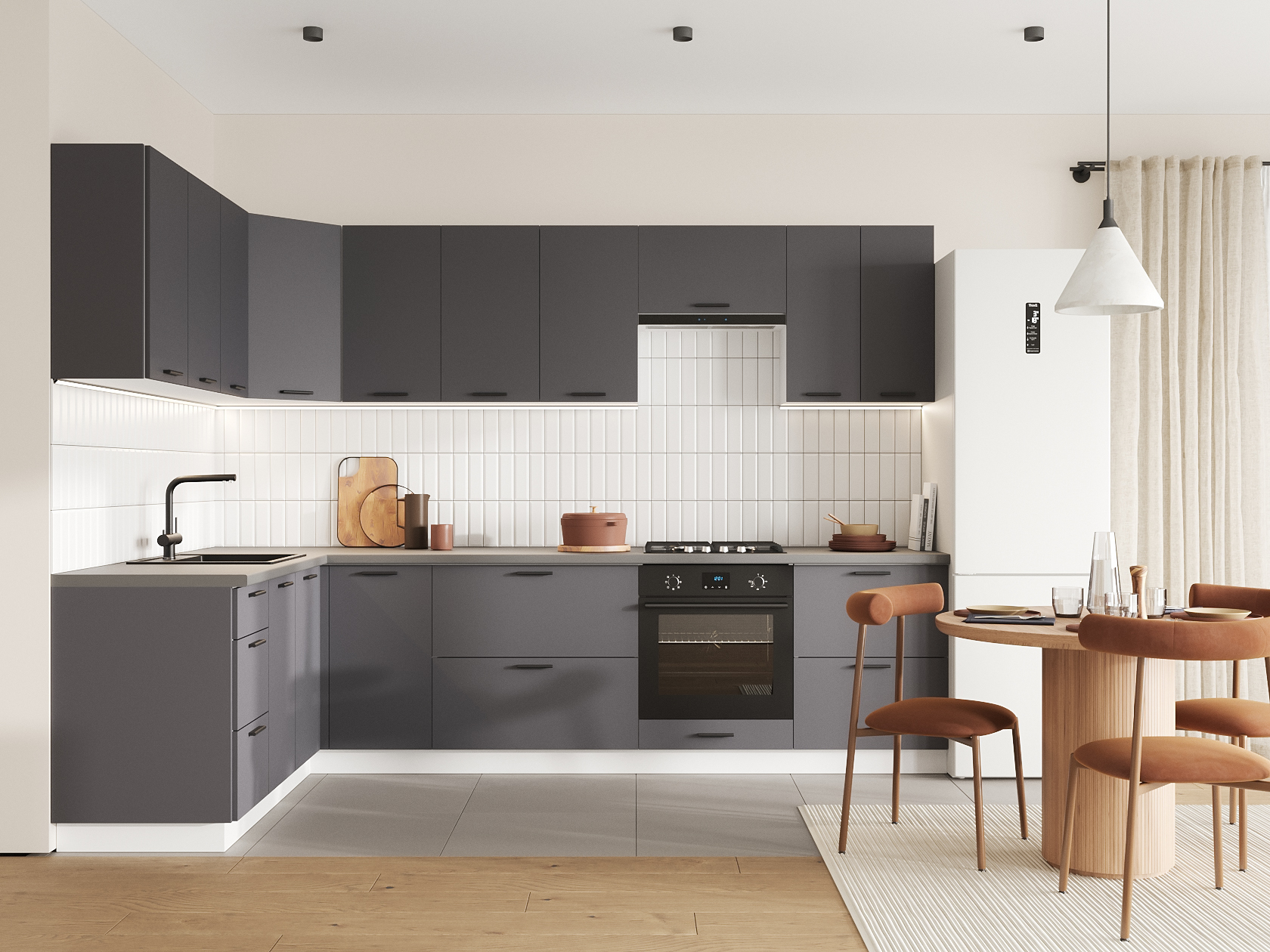 Кухонный гарнитур Модус 300х180 см Белый / Графит серый