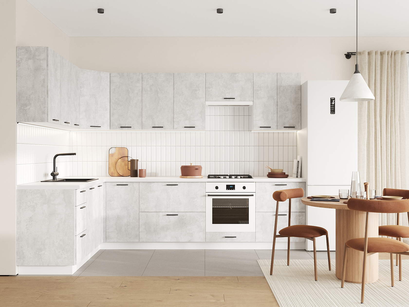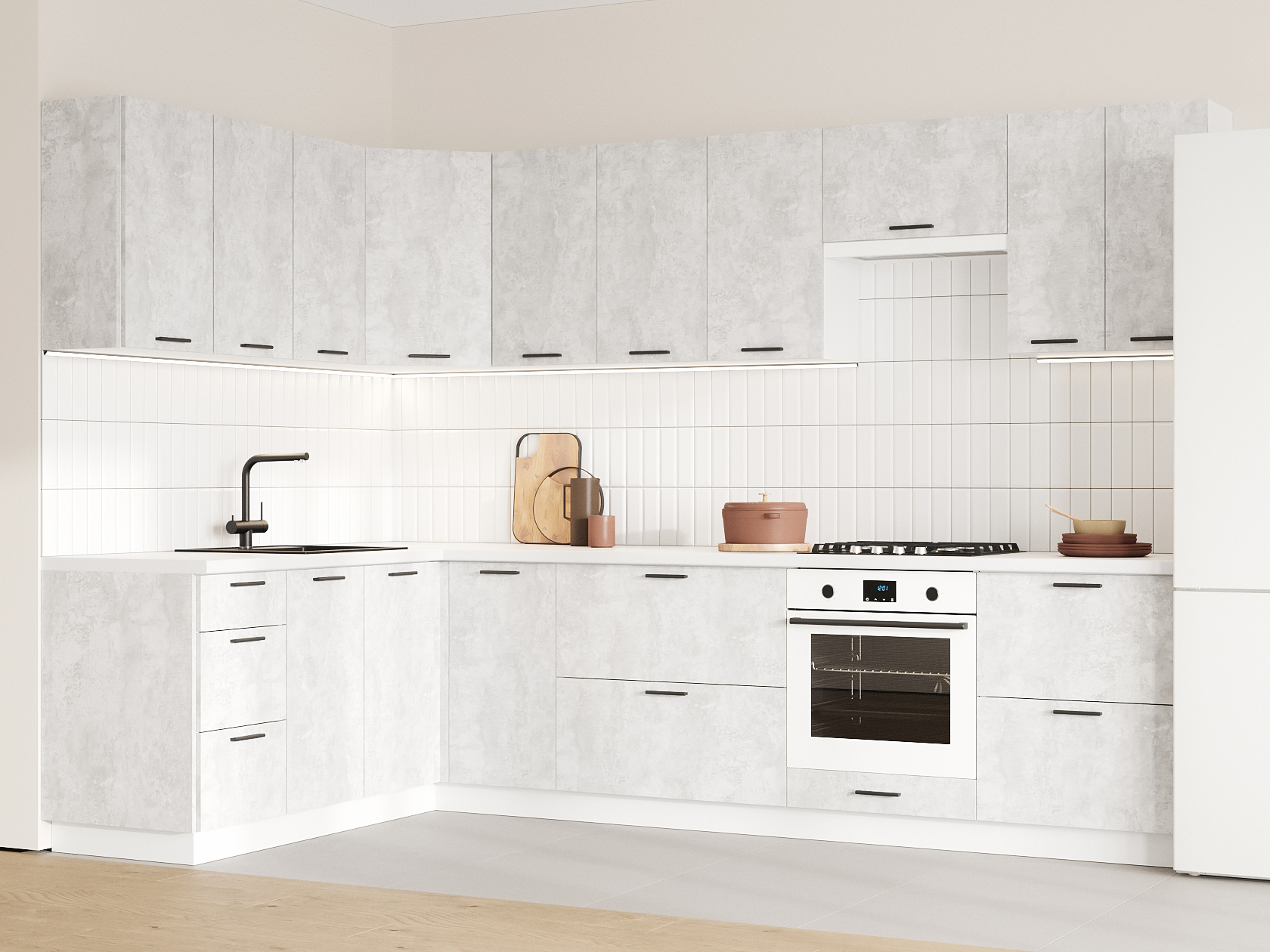 Кухонный гарнитур Модус 300х180 см Белый / Цемент светлый