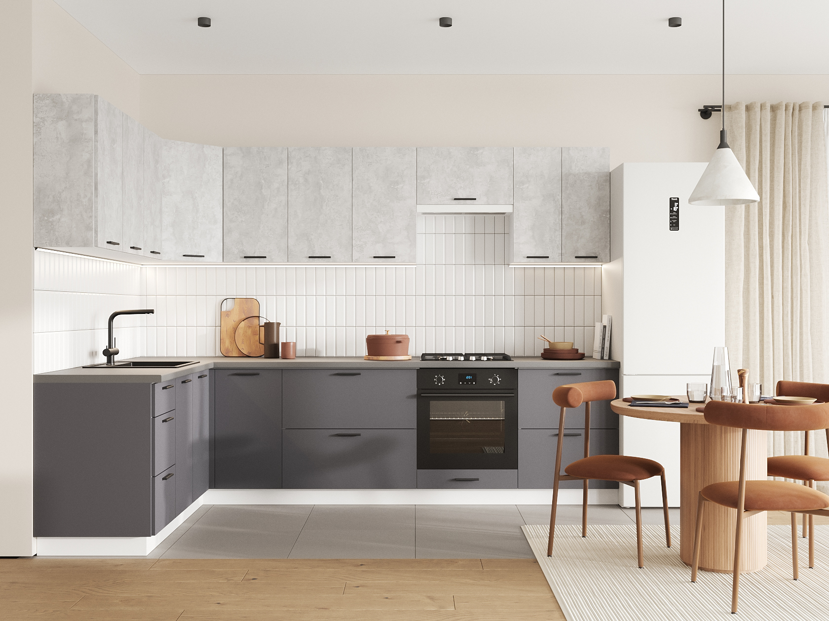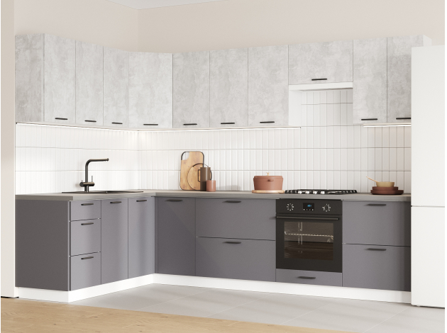 Кухонный гарнитур Модус 300х180 см Белый / Цемент светлый / Графит серый