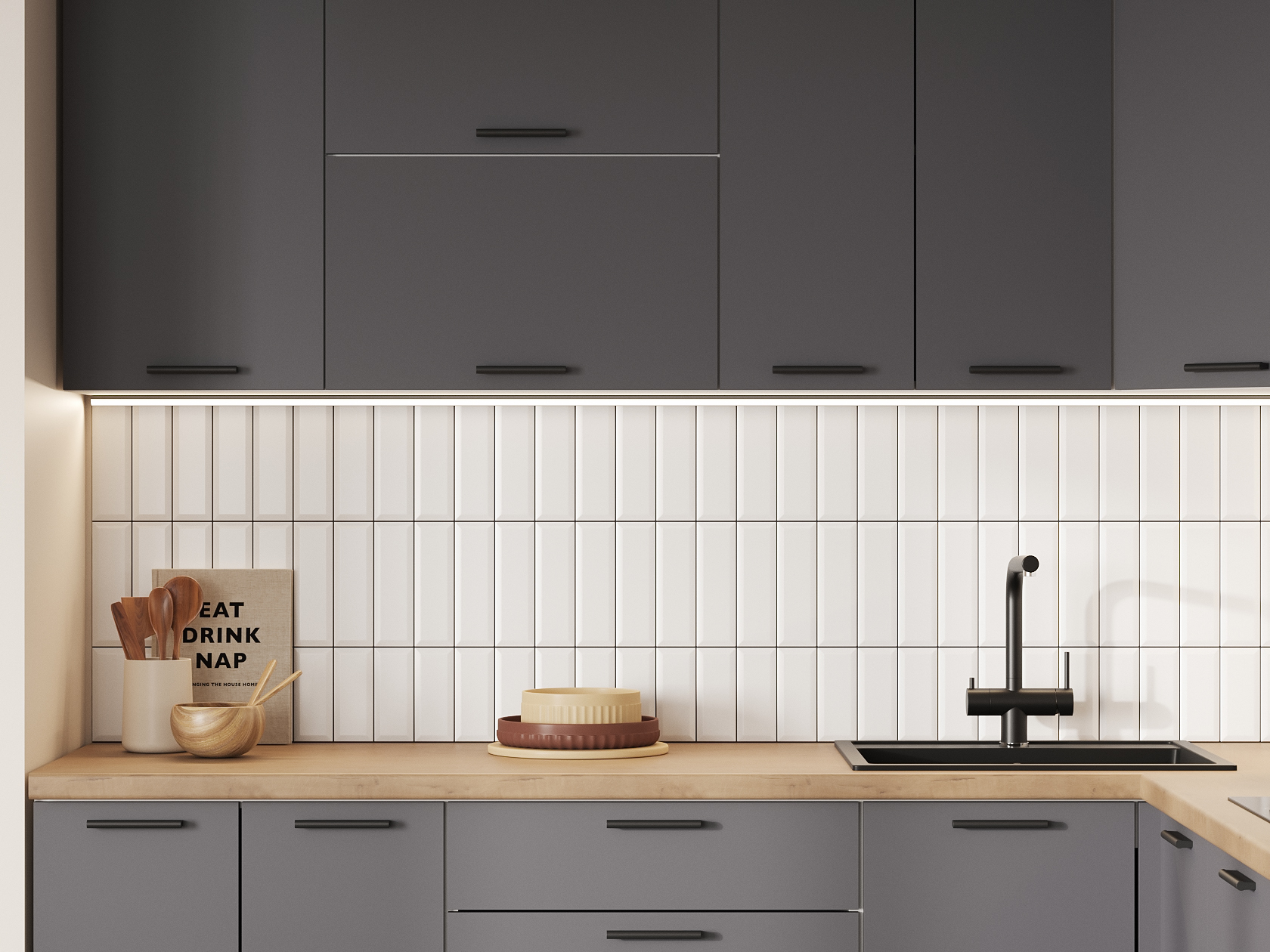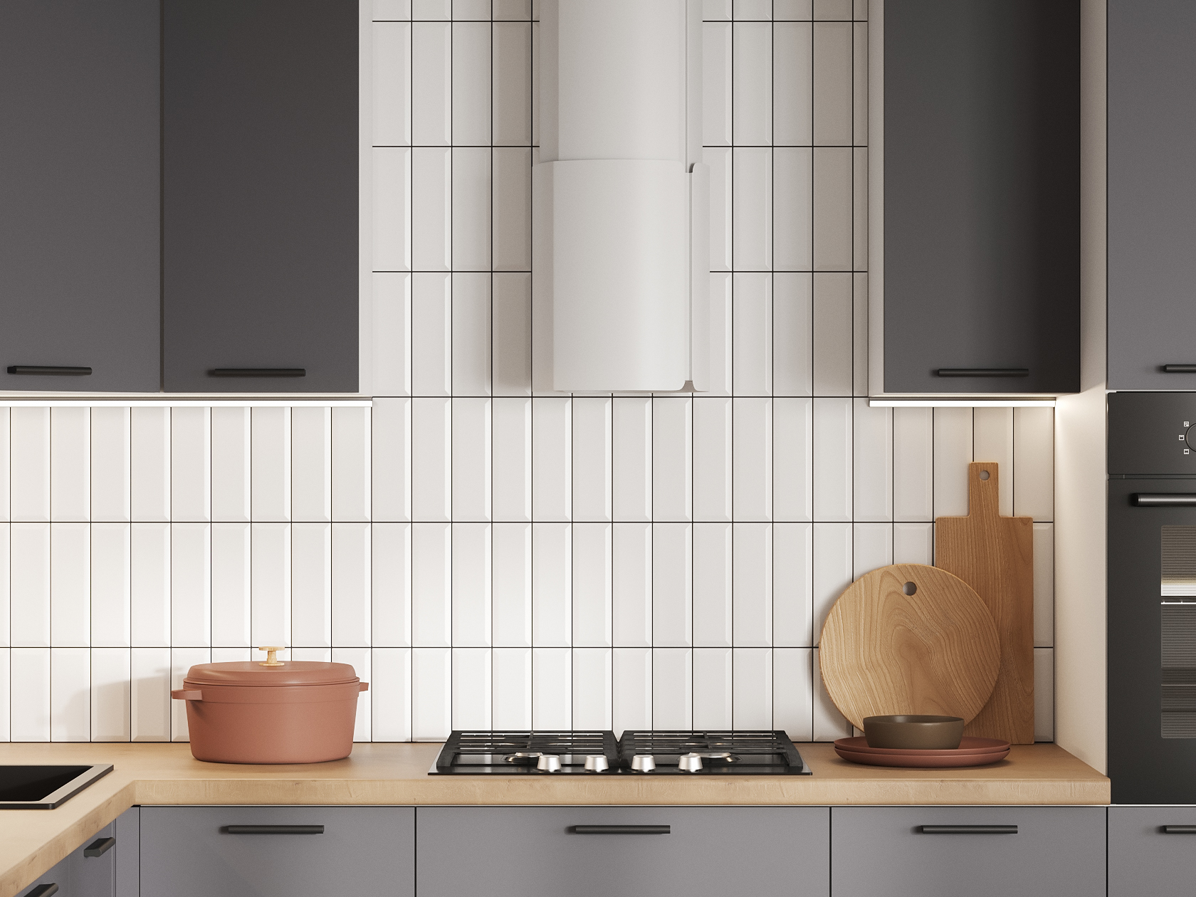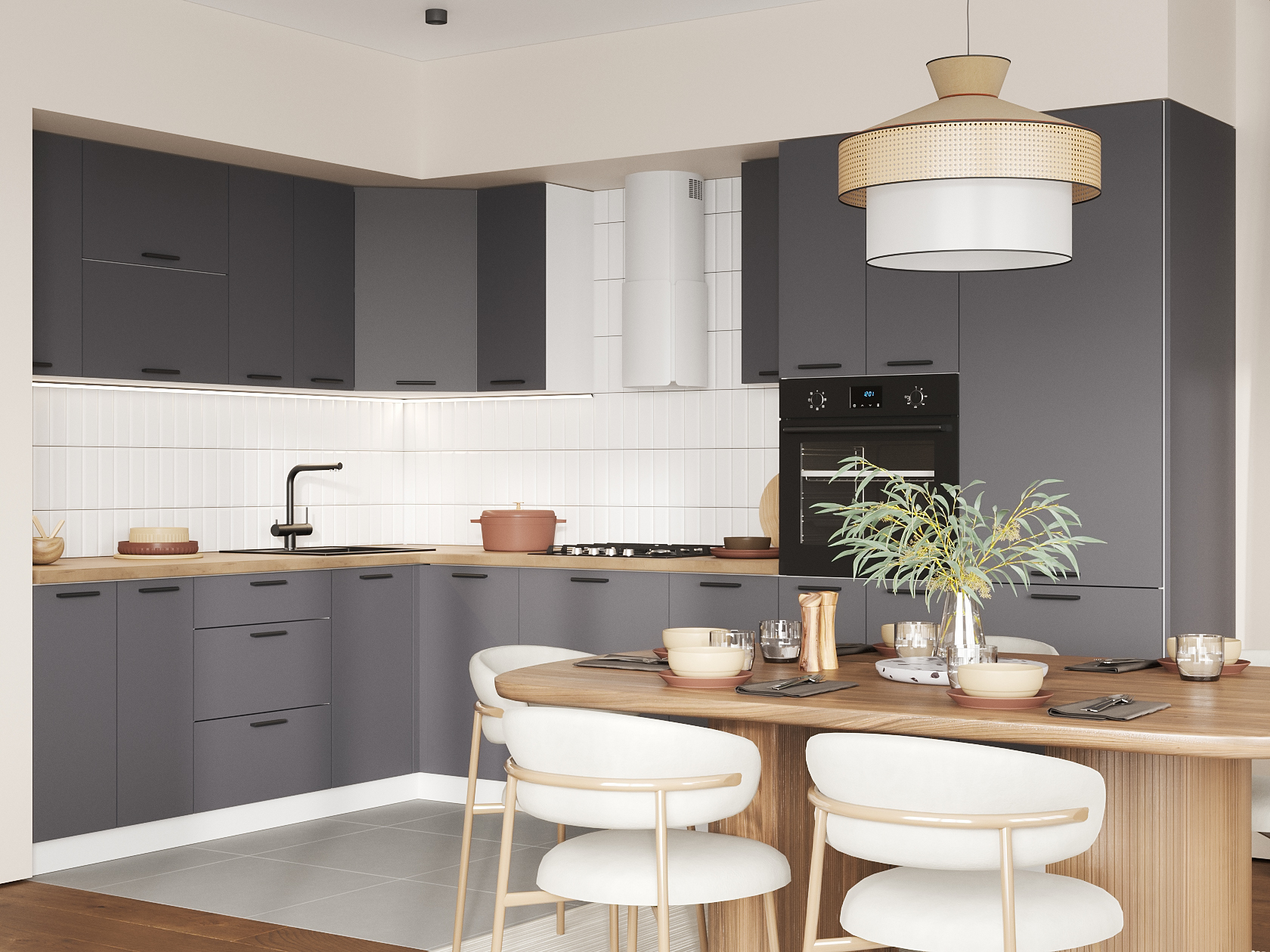 Кухонный гарнитур Модус 320х220 см Белый / Графит серый