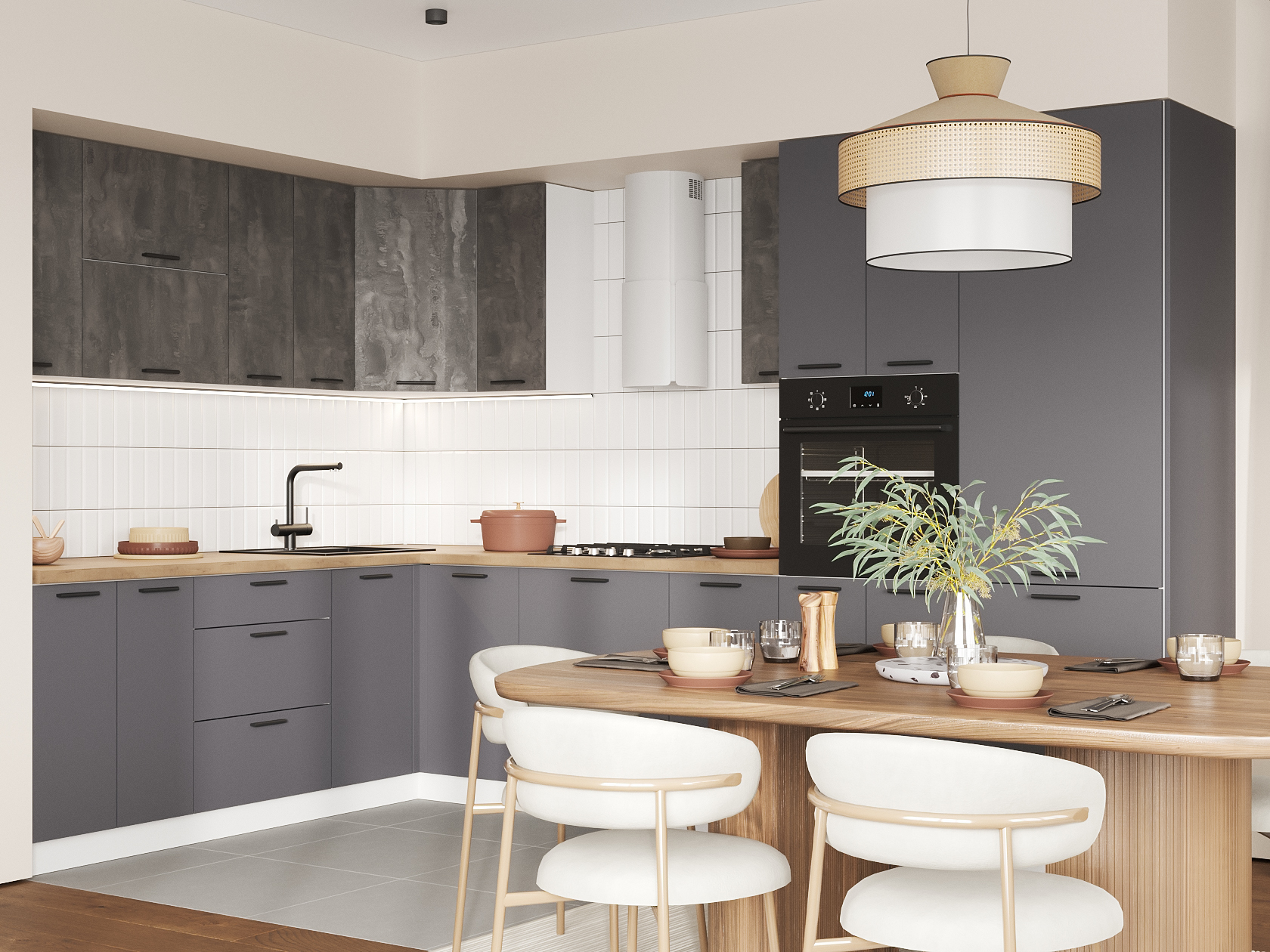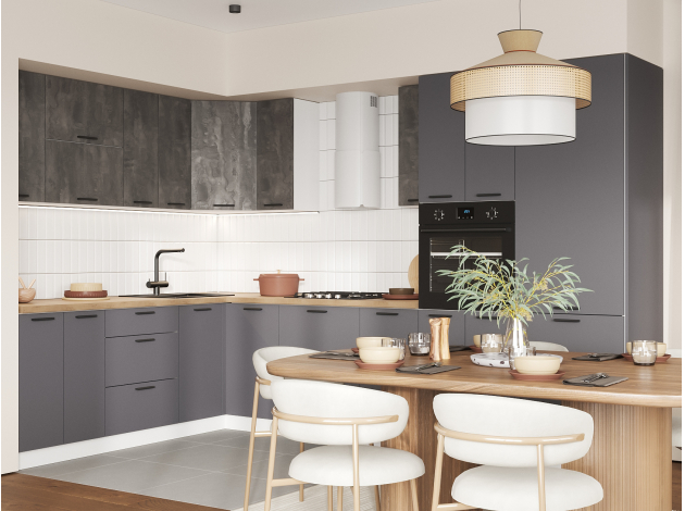 Кухонный гарнитур Модус 320х220 см Белый / Камень темный / Графит серый